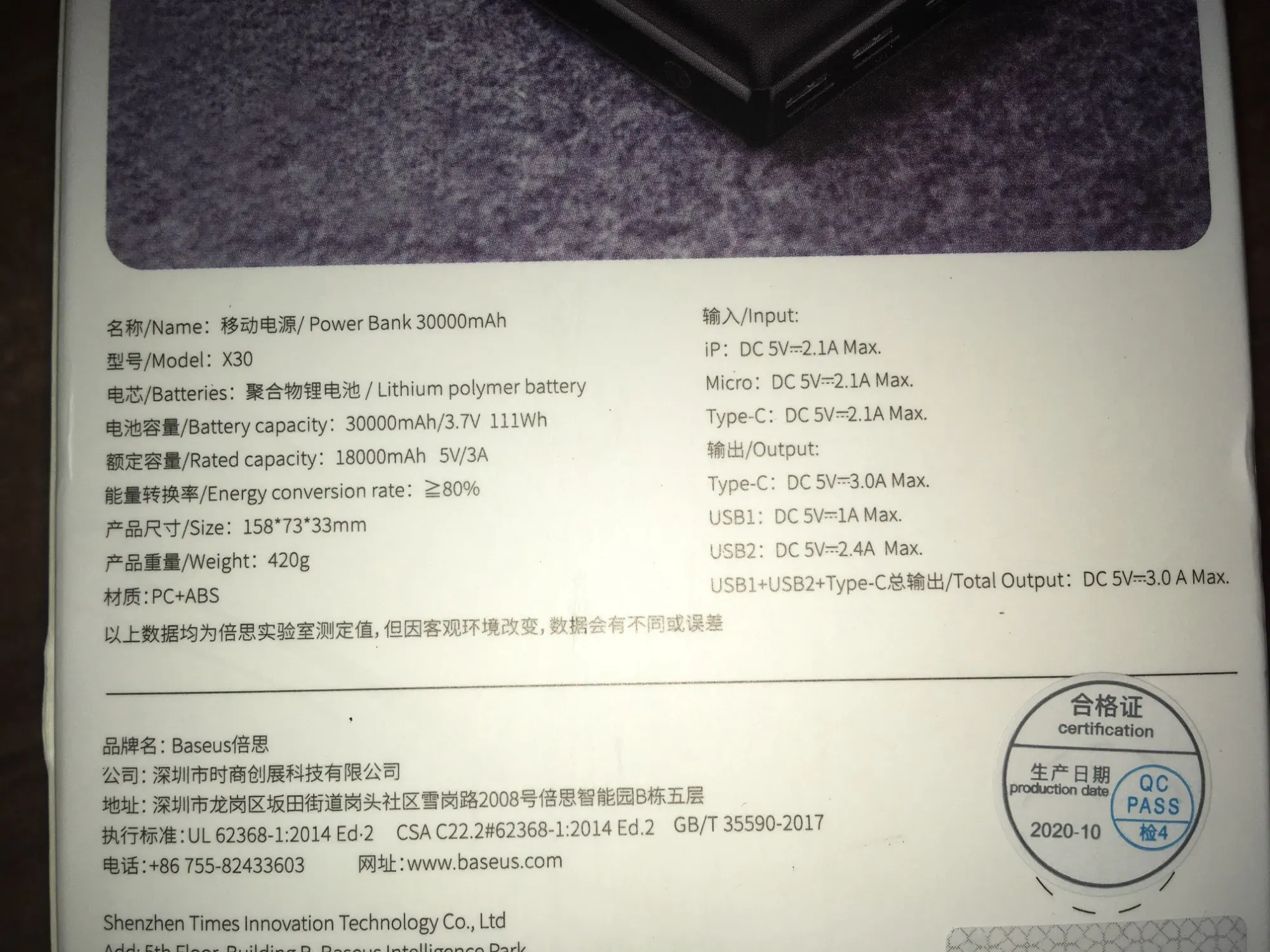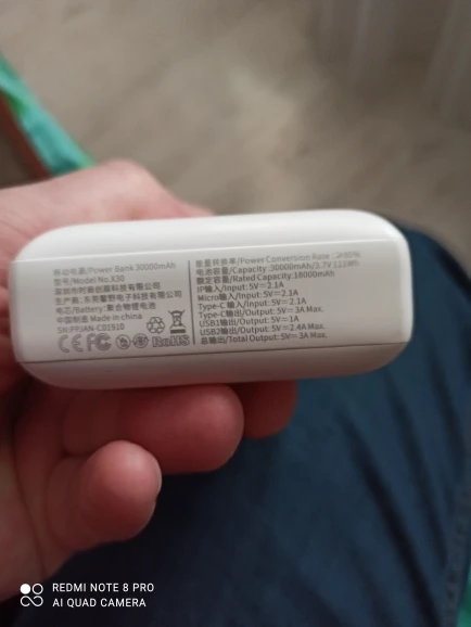 Когда я покупал это был самый дешёвый повербанк на 30000, покупал за 900 рублей. Скорее в нём что-то похожее на 30. Заряжает хорошо и сам долго заряжается. Думал в нем есть быстрая зарядка для андроид, а там 15 ватт для айфона