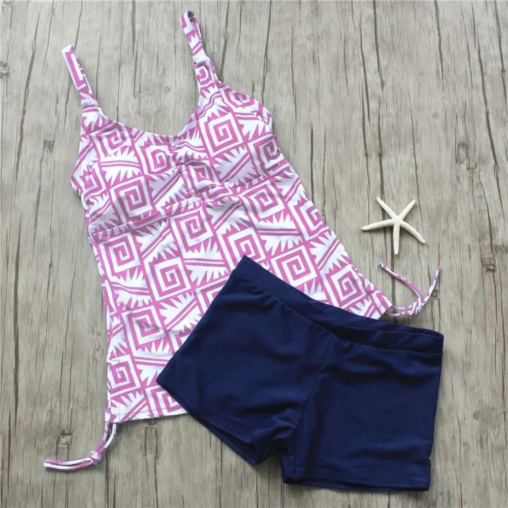 Комплект женский для плавания из двух предметов, купальники-танкини с V-образным вырезом, одежда для плавания, шорты, купальный костюм XL, 2019