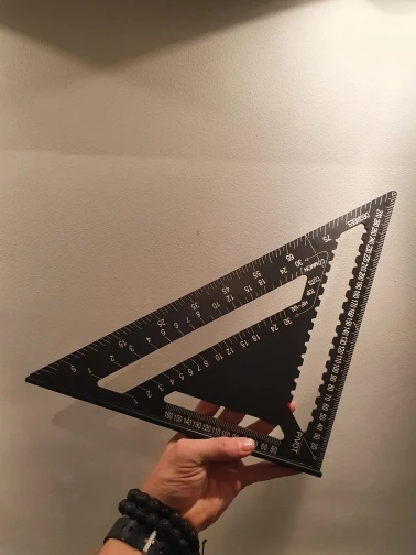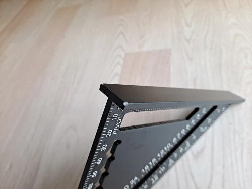 Все, как в описании. но - отправлено в обычном пакете, углы побились, вернул 200р риски краской, а не фрезеровкой, угольник конечно грубоват и точнее 2мм с ним не отмерить для столярных работ очень удобно (полка 90 градусов) - удобнее чем классические уголники, за счет толщины и ухватистости