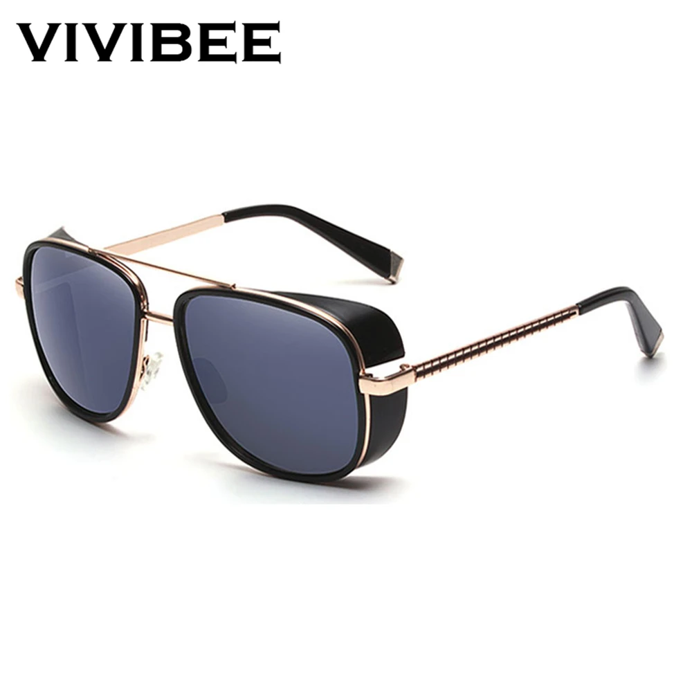 Трендовые мужские солнцезащитные очки в стиле Тони Старка VIVIBEE, винтажные дизайнерские квадратные очки с красными линзами в стиле ретро, 2021