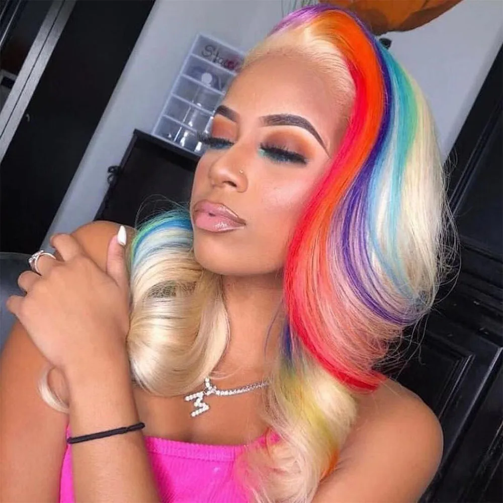 Парики из натуральных волос с эффектом омбре, розовые, 613 блонд, волнистые, прозрачные