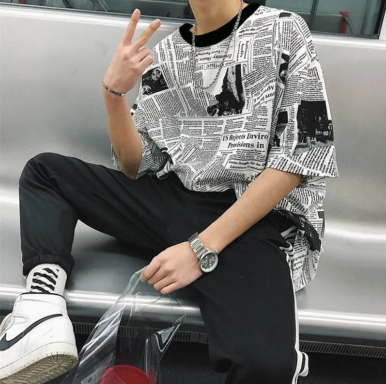Футболка мужская оверсайз в Корейском стиле, уличная одежда с забавным граффити в стиле Харадзюку, рубашка в стиле хип-хоп с коротким рукавом, белая, лето