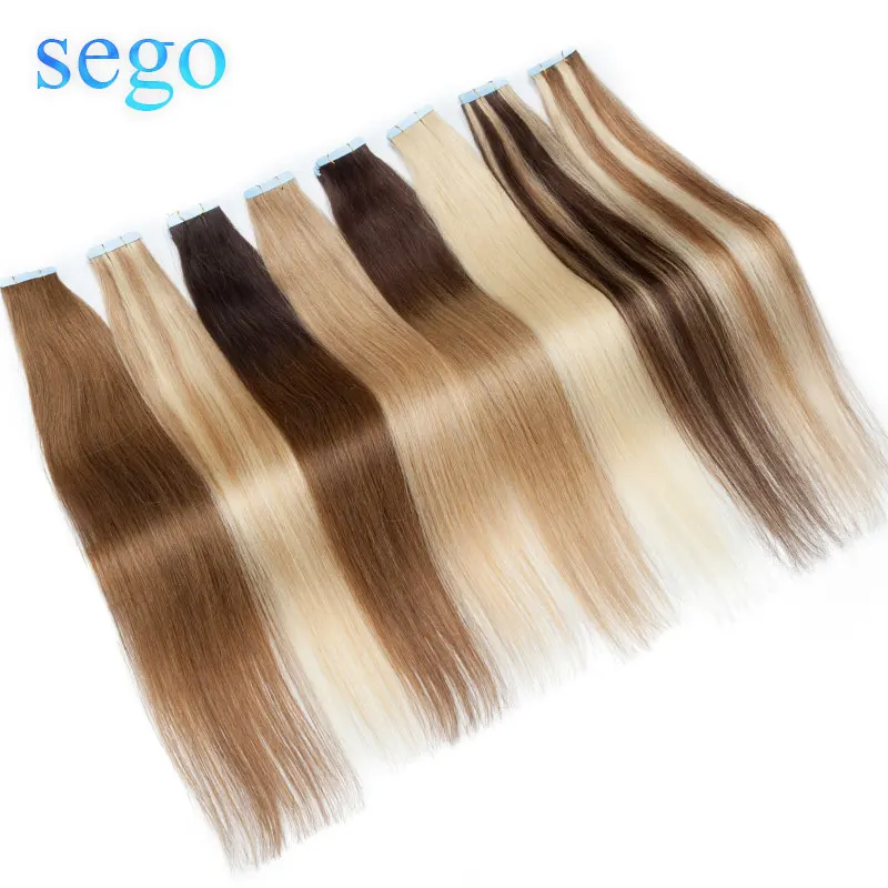 SEGO12 дюймов-24 дюйма, 2,5 ярких волос, 50 г100 г, прямые человеческие волосы, лента для наращивания волос, не Реми, двухсторонняя лента для волос