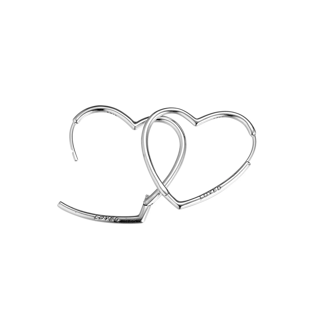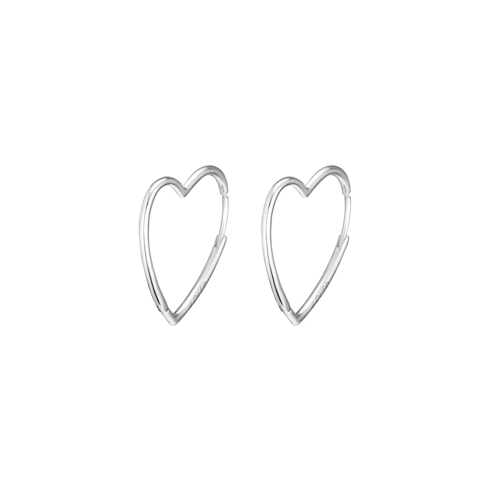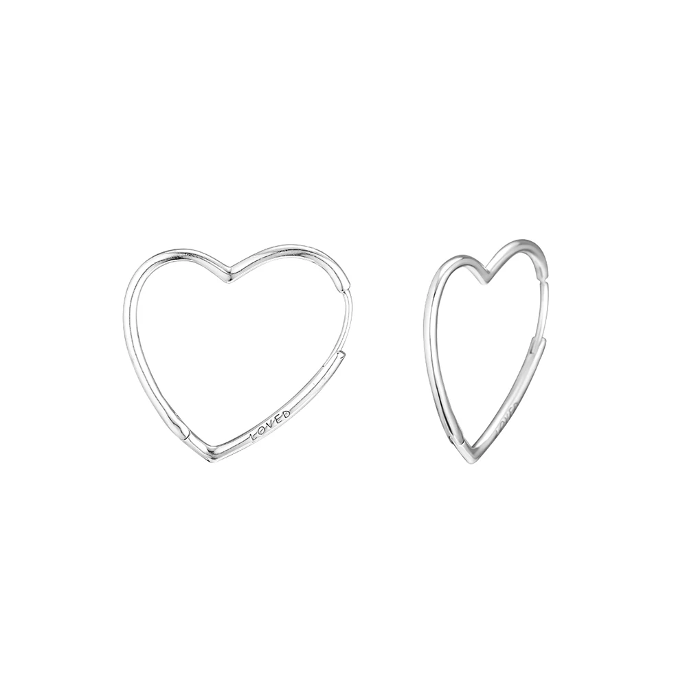Серьги-кольца Асимметричные женские из серебра 100% пробы с сердечками