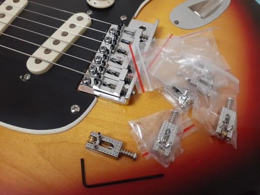 Как в описании. Отделка продукта может быть лучше. Хорошо подходит для мостов, оборудованных тремоло. Продавец отправил заказ быстро. Получил также быстрее, чем ожидалось. Спасибо.