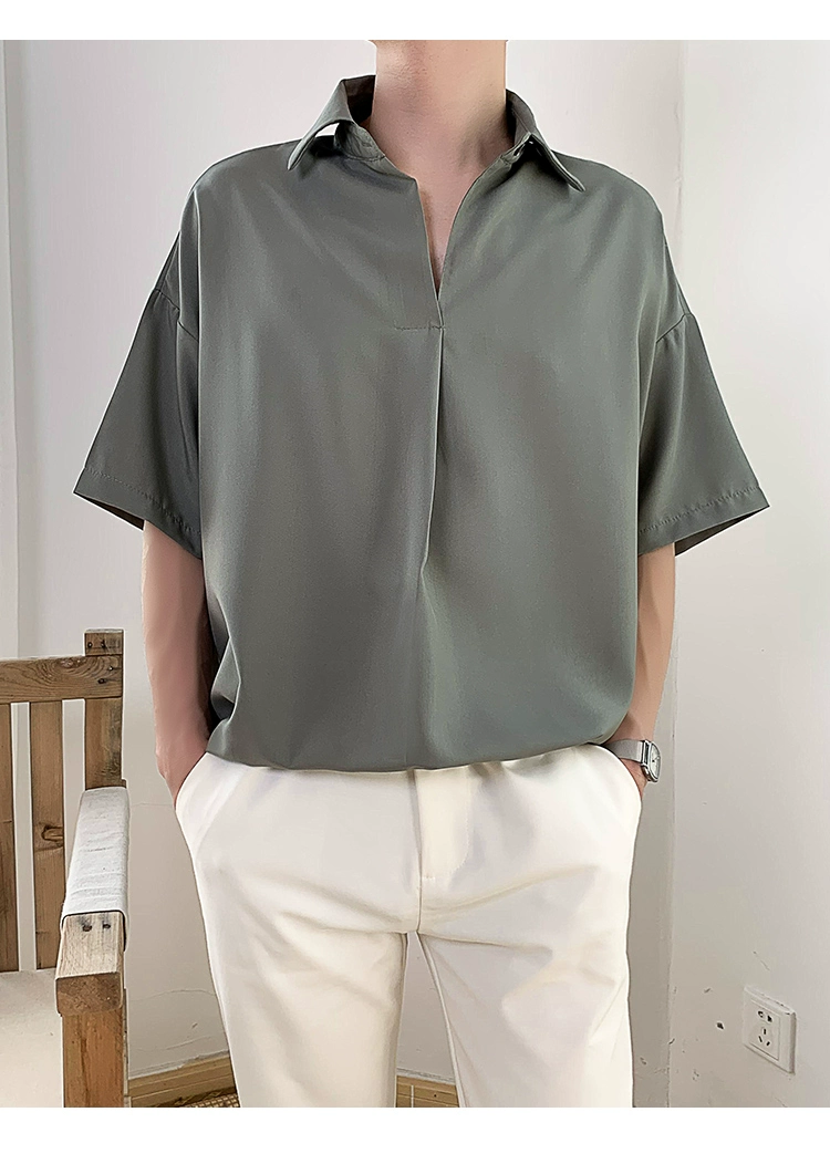 Мужская рубашка с коротким рукавом, свободная Однотонная рубашка с французскими манжетами, большие размеры, лето 2020