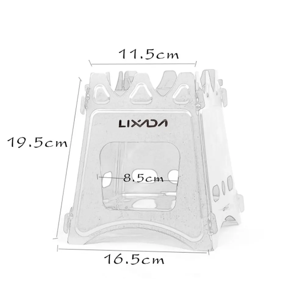 Легкий и удобный, чтобы вынуть. Отлично подходит для приготовления пищи на улице.Особенности:Простая установка.Используйте дерево для возгорания.С черной сумкой, она портативна для переноски снаружи.Подходит для кемпинга, пикника и т. д.Характеристики:Бренд: LixadaМатериал: нержавеющая стальМаксимальная нагрузка: 10 кгТовар Размеры: 19,5*11,5/16,5 см (высота * Верхний/Нижняя ширина)Вес изделия: 448 г/15,79 унцийРазмер посылка: 18*16,5*1 см/7,09*6,50*0,39 дюймовВес посылка: 473 г/16,69 унцийПосылка:1 * дровяная печь1 * сумка
