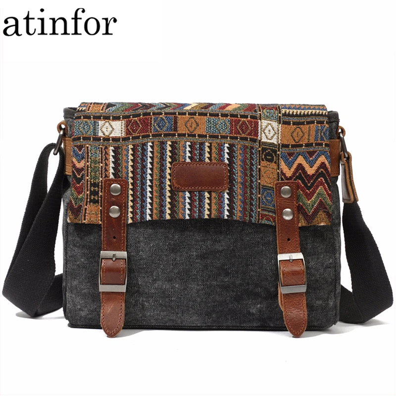 Брендовые винтажные повседневные холщовые сумки-мессенджеры atinfor, Мужские квадратные маленькие сумки-Кроссбоди