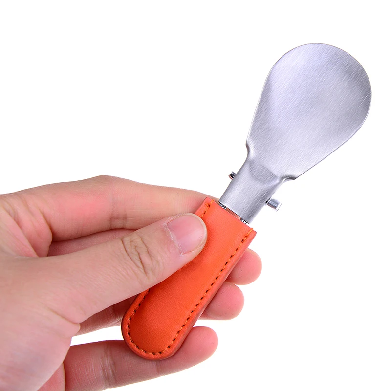 Новинка 1 шт., складные рожки для обуви, уход за ногами, прочный металл, нержавеющая сталь, ручка из искусственной кожи, переносные рожки для обуви, инструмент для ухода за ногами