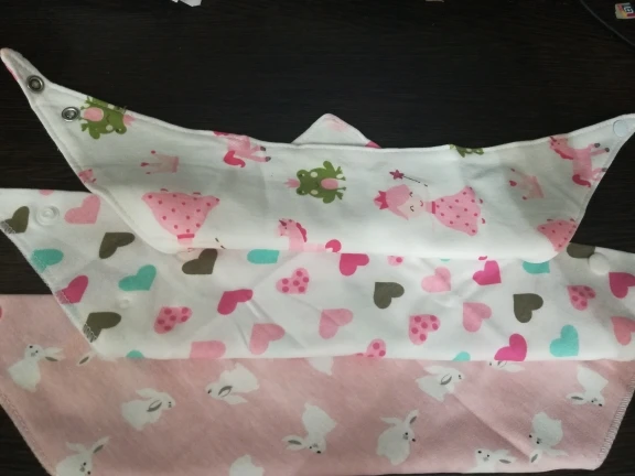Слюнявчики очень понравились. На худенького ребёнка возраст 1,4 подошли отлично. качество отличное, хлопок. Шли правда долго, больше месяца, но товар мне понравился. После стирки при 40° в машине, не скривились, не сели, не полиняли. Рекомендую
