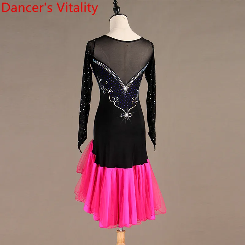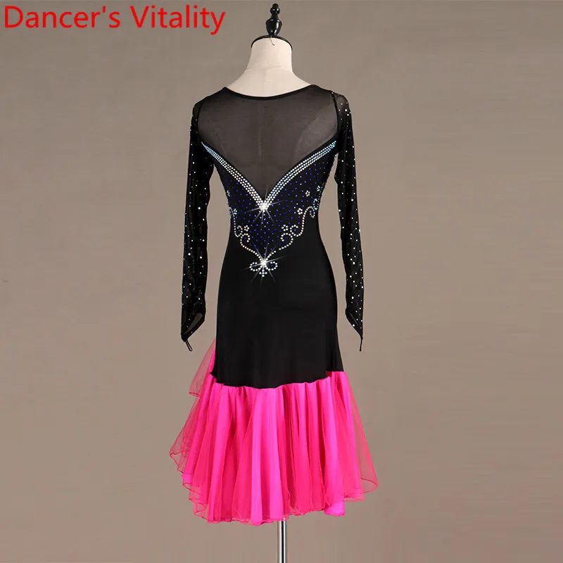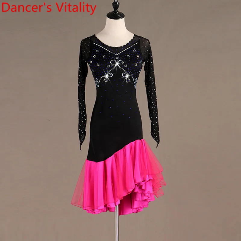 Платье для латинских танцев, с вырезами, для взрослых, для женщин, новинка, стразы, Румба, Самба, ча, сальса, Quickstep, костюмы для соревнований