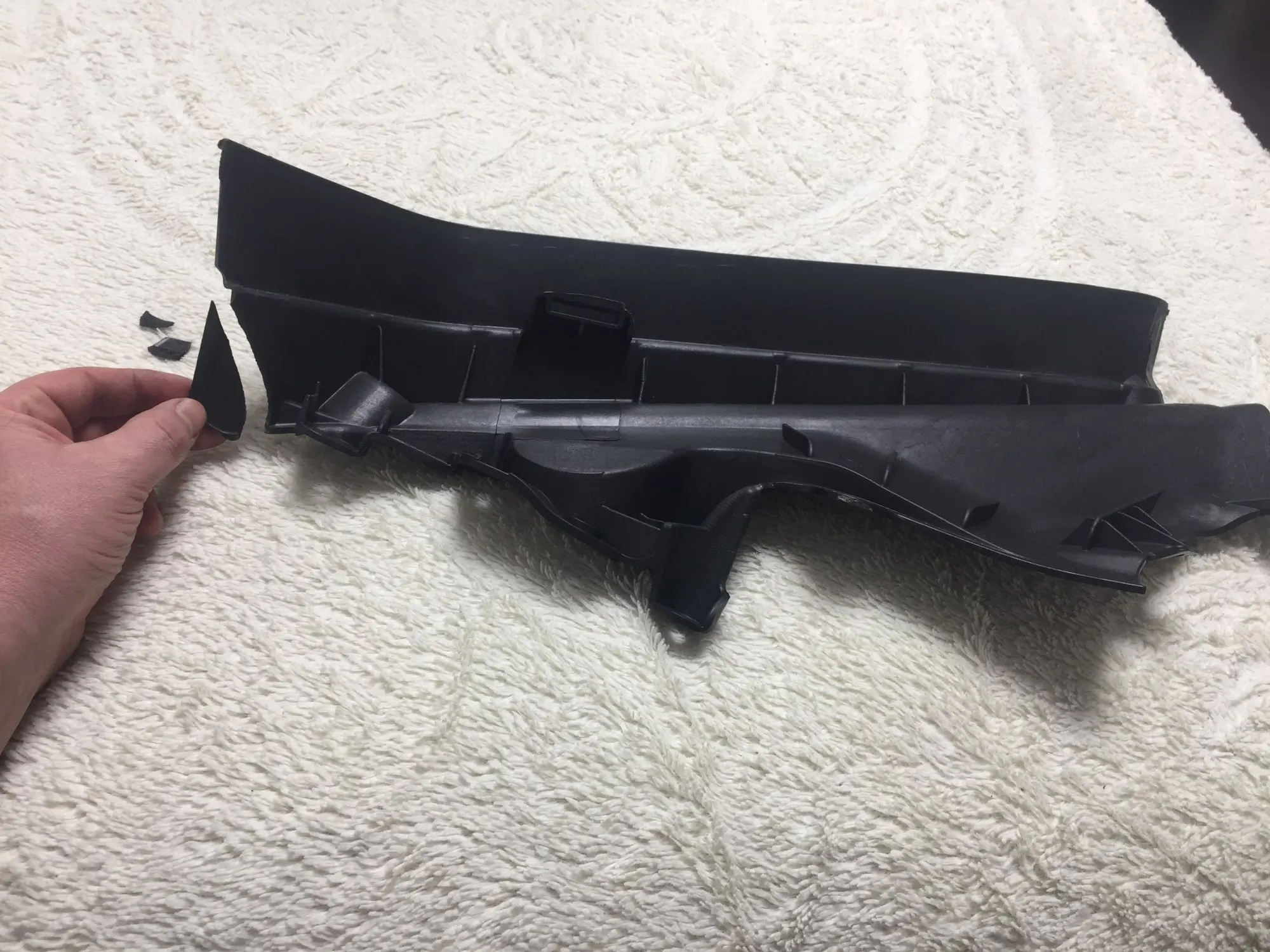 Для тих хто хоче полагодити болячку X5 E70-цей китайский пластік -це не панацея.В оригіналі дорестайлінга там проклеяно паралоном(який юзається і з часом пропускає воду на 5,6 циліндри) -а після реста -там іде гумова ушільнювачі-кароч-вам прийдеться кохлозити самому на ций китайський пластік! а так все ок-по зазором підійшло!