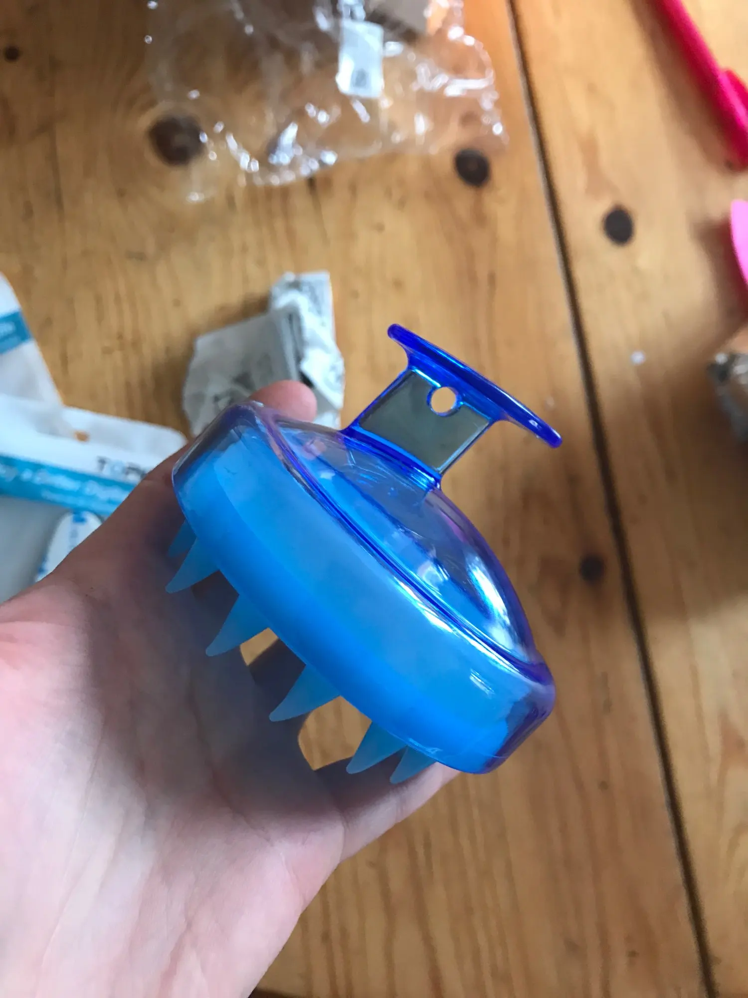 Щетка очень понравилась: легкая, зубцы силиконовые, часть с "держалкой" пластиковая, держать в руке удобно. Травяная маска с корней волос смылась гораздо легче с этой штукой. Вышел срок защиты покупателя, и по спору деньги вернули. Через 3 недели от закрытия спора посылка приехала. Посылка шла в итоге 3 месяца, Жаль, что продавец не продлял защиту покупателя. Товар очень рекомендую.