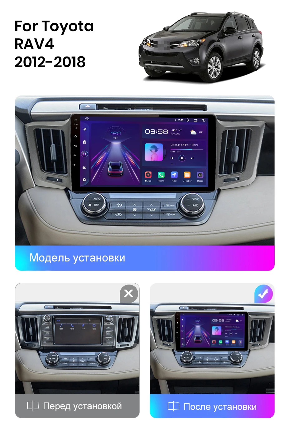 на тайоту раф4 2016 года встал как родной, смотрится огонь, продавец как всегда на высоте ! установка вместе с камерой заняла 5часов в 4-ре руки! все работает без тормозов! (фото я не делал скидываю для примера сходство 100%) брал 2гб на 32гб