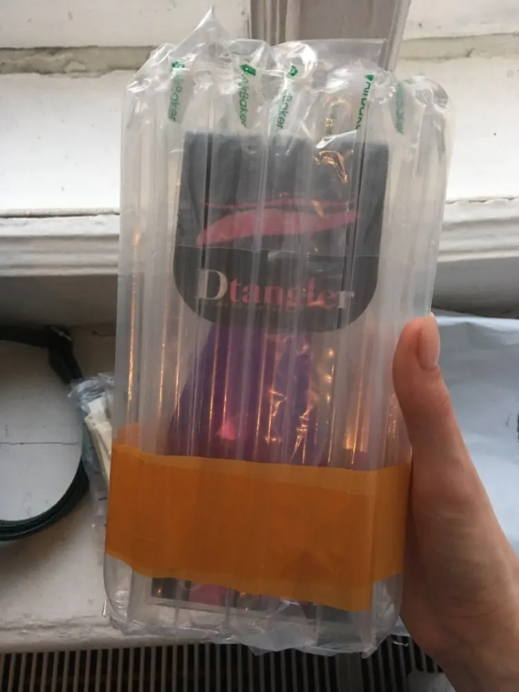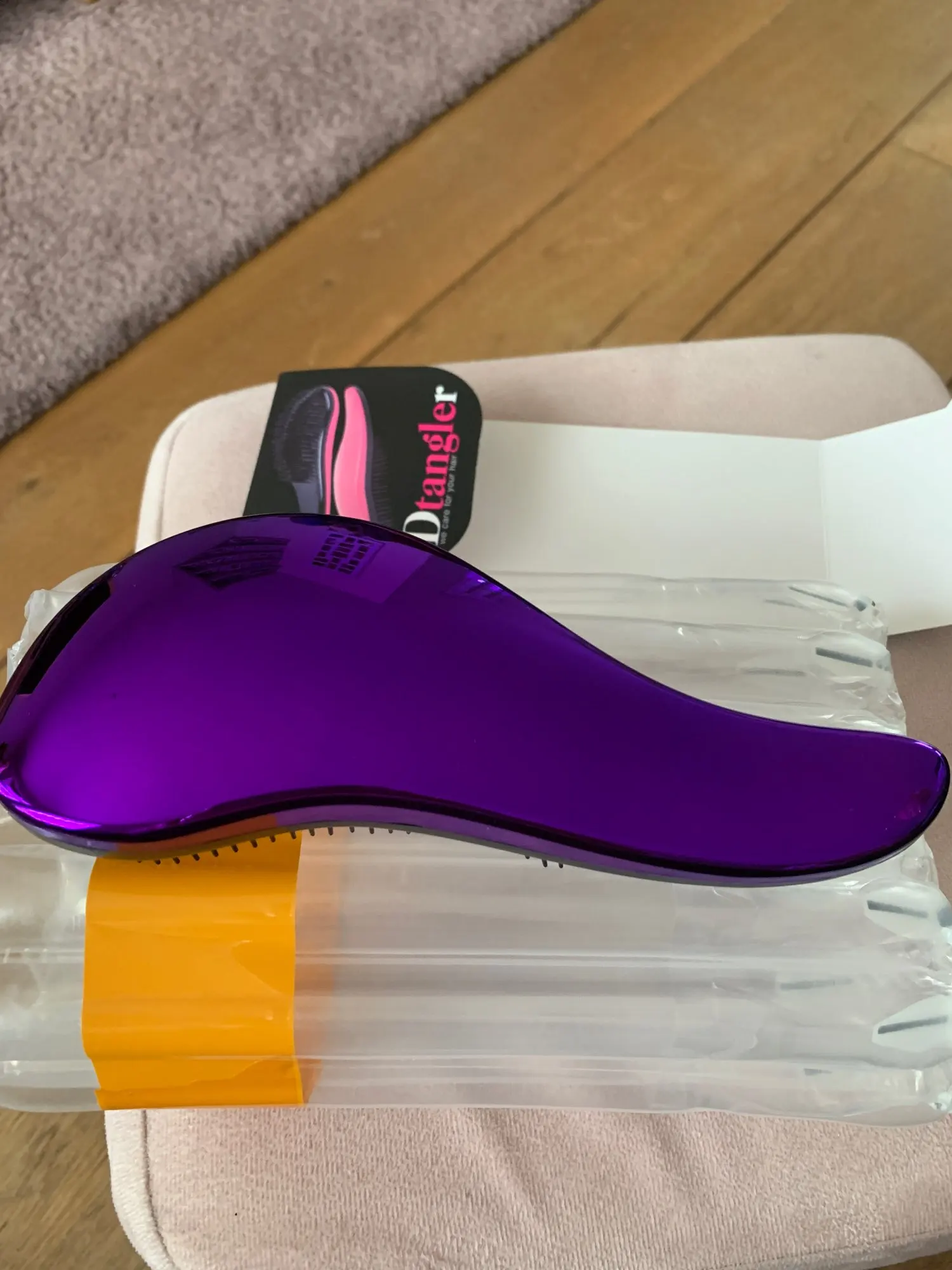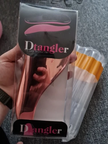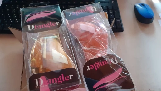 Очень быстрая доставка, 2 недели. Расческа не плохая, но далека от тангл, не так хорошо распутывает волосы.