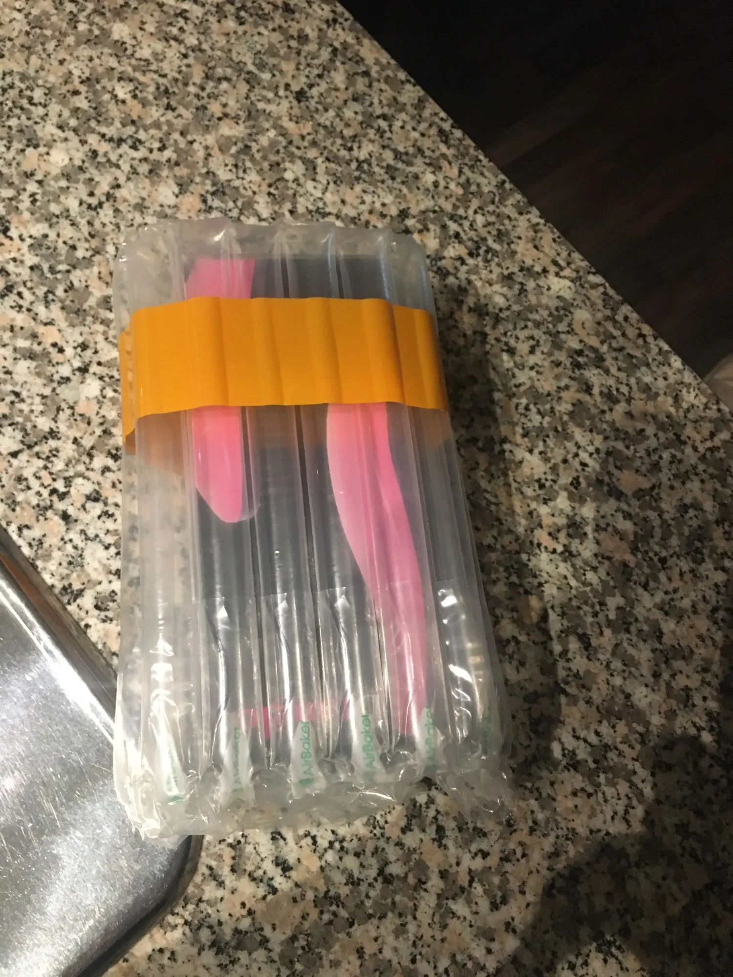Пришла в коробочке, как на фото. Зубчики довольно жёсткие.