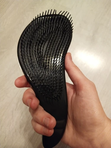 Это самая обычная щетка, она не делает никакого чуда с вашими волосами, расчесывание занимает столько же времени, сколько и с любой другой щеткой. В руке лежит неудобно, обычная ручка была бы более кстати. Левшам точно не подойдет Щетка оказалась гораздо больше, чем я думала, такую не закинешь в сумку. Но есть и плюсы. На ней нет никаких лишних деталек, стыков, которые бы цепляли волосы. После первого (!) же расчесывания щетка стала выглядеть так, будто собрала всю пыль в доме, хотя волосы свежевымытые. Не представляю, как мыть это чудо, зубцы стоят очень часто.