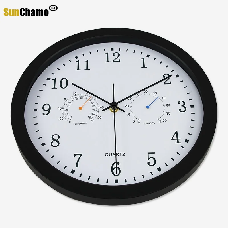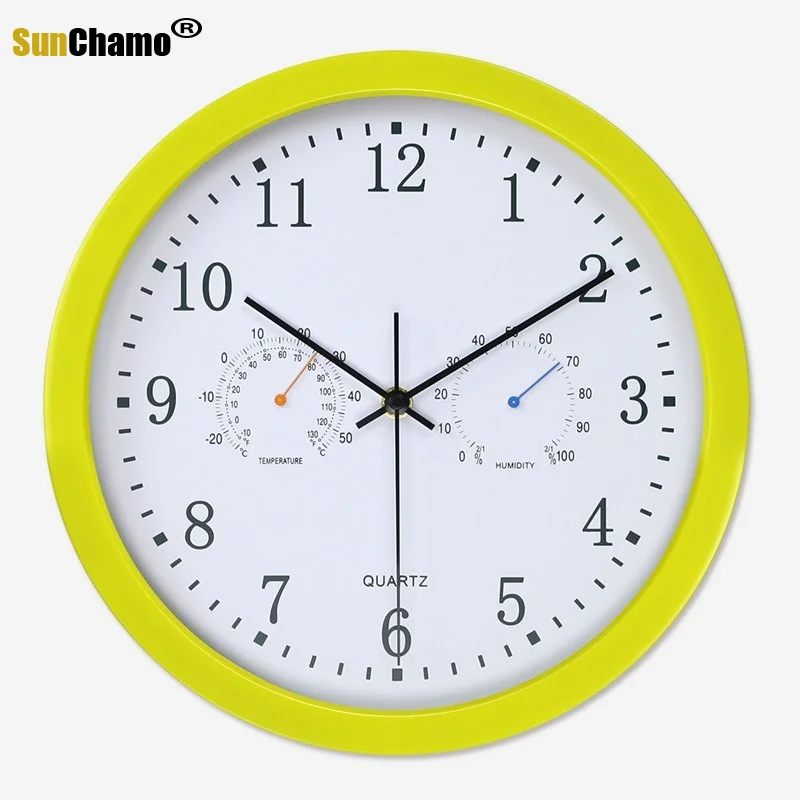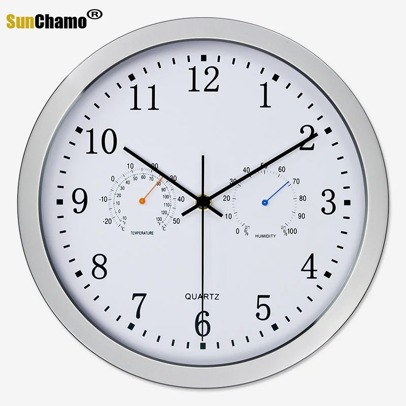 2021 лет Тихий Кварцевый Металл настенные часы с термометром гигрометр бесшумный механизм без тикания домашний декор новый дизайн