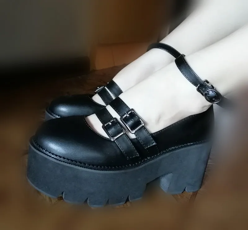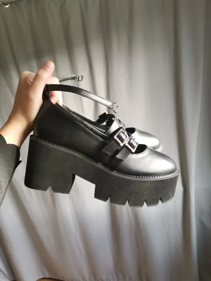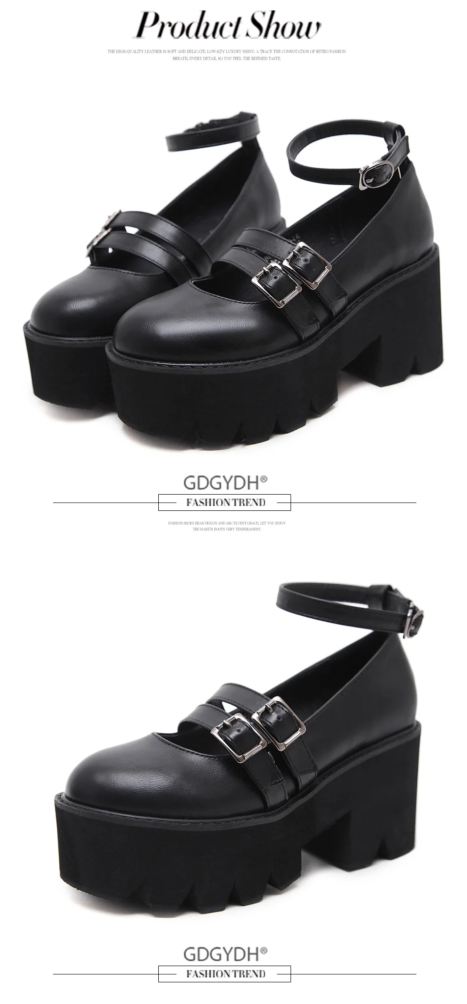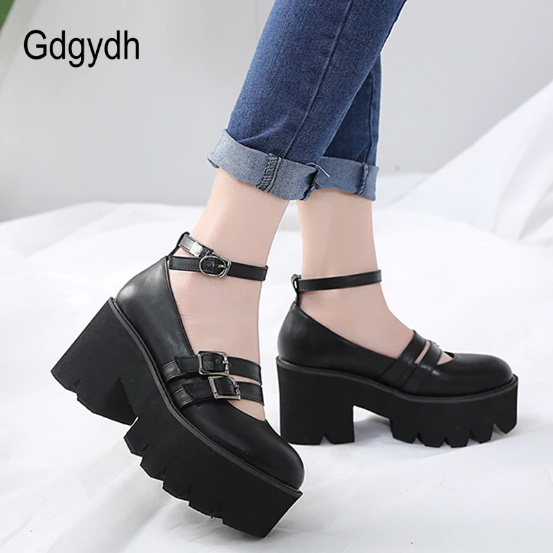 Женские туфли-лодочки в готическом стиле Gdgydh, черные, с ремешком на щиколотке, на массивном каблуке, платформе и толстой подошве, удобные, 2019