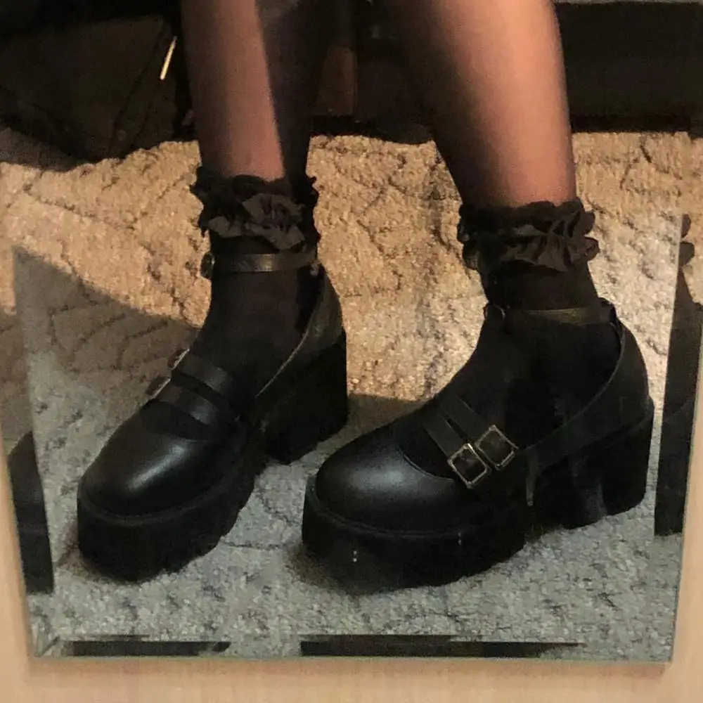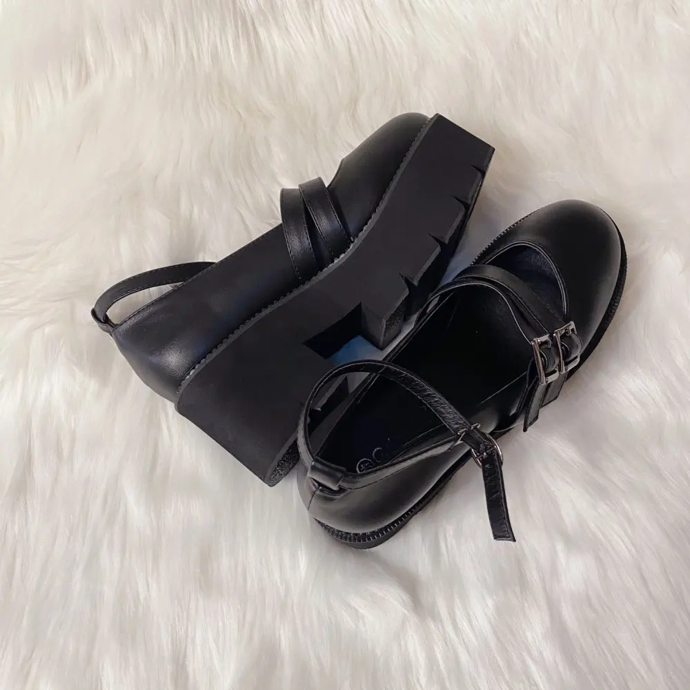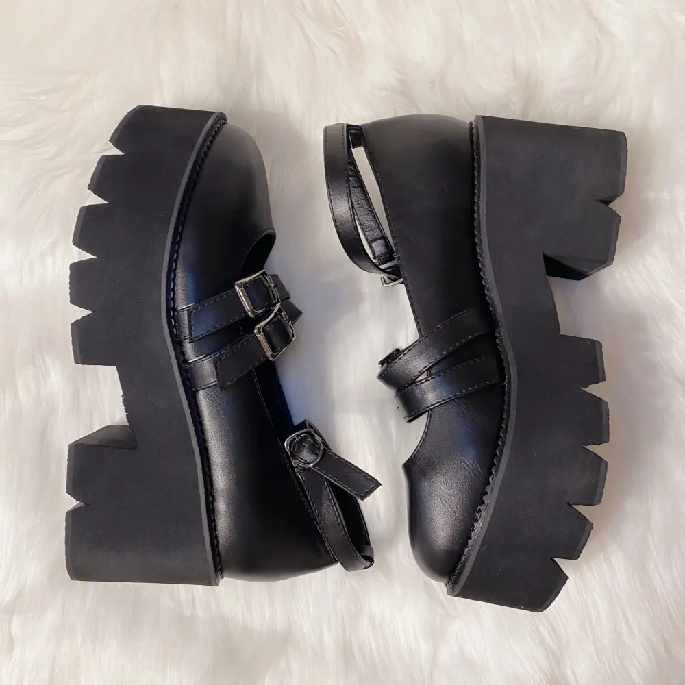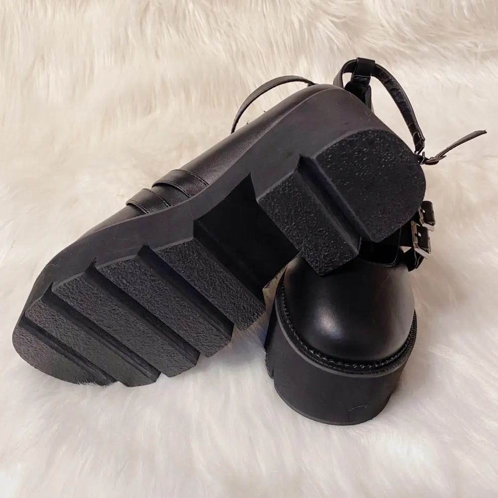 Женские туфли-лодочки в готическом стиле Gdgydh, черные, с ремешком на щиколотке, на массивном каблуке, платформе и толстой подошве, удобные, 2019