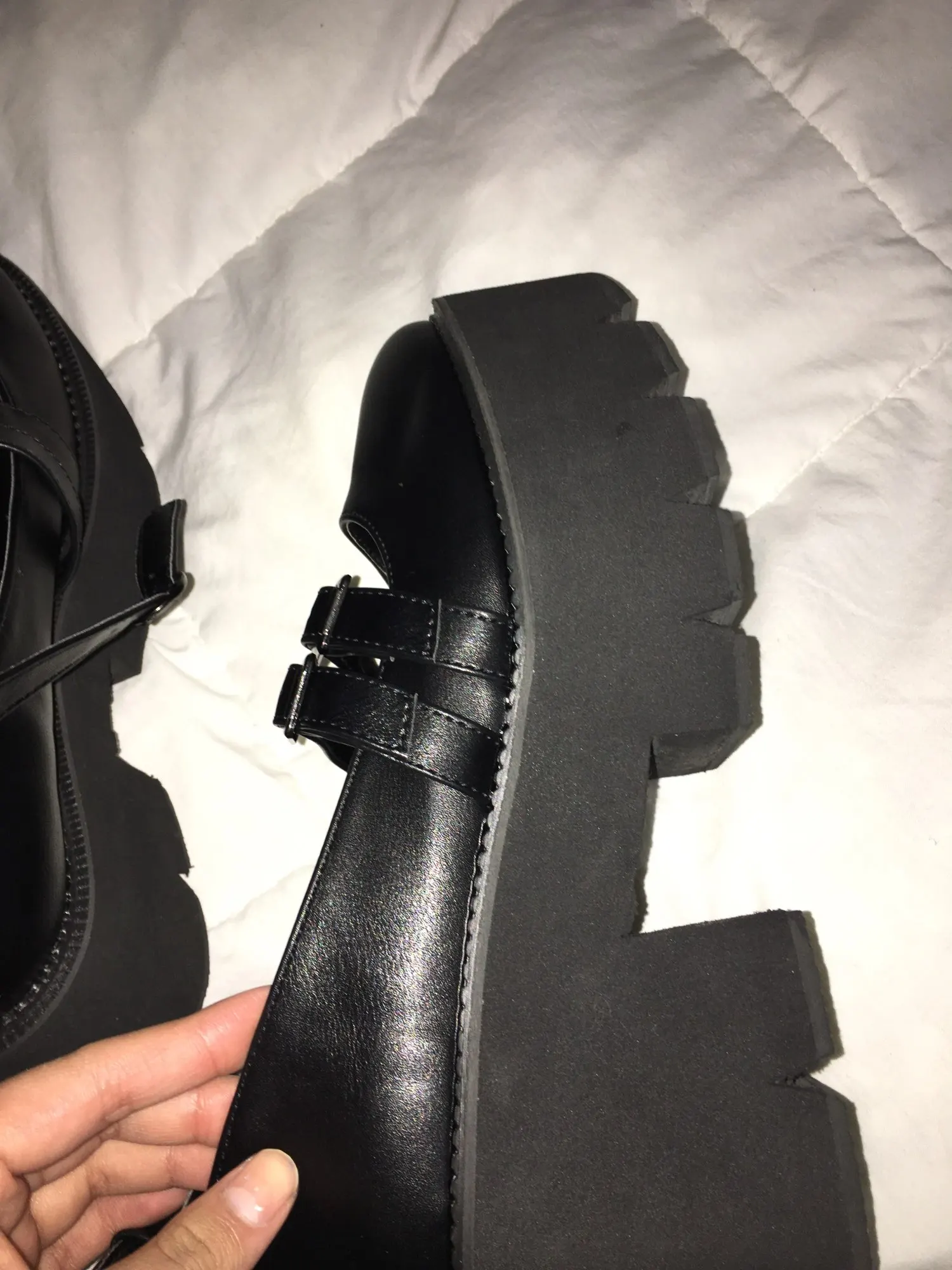 Это моя новая любимая обувь. Размер точный, просто посмотрите на таблицу размеров, если вы не уверены. Они действительно удобные и легко входят, и это происходит от кого-то с 0 опытом работы с платформой или каблуком. Люди говорят, что Пряжка им не подходит, но если я отрегулирую ее до самого плотного, это может быть идеально. Если вы думаете о получении этих туфель, просто сделайте это. Сделайте это, сделайте это. Моя единственная критика в том, что доставка занимает около месяца, что является средним для AliExpress, но все еще чувствую себя долго. Они стоят ожидания и стоят $25