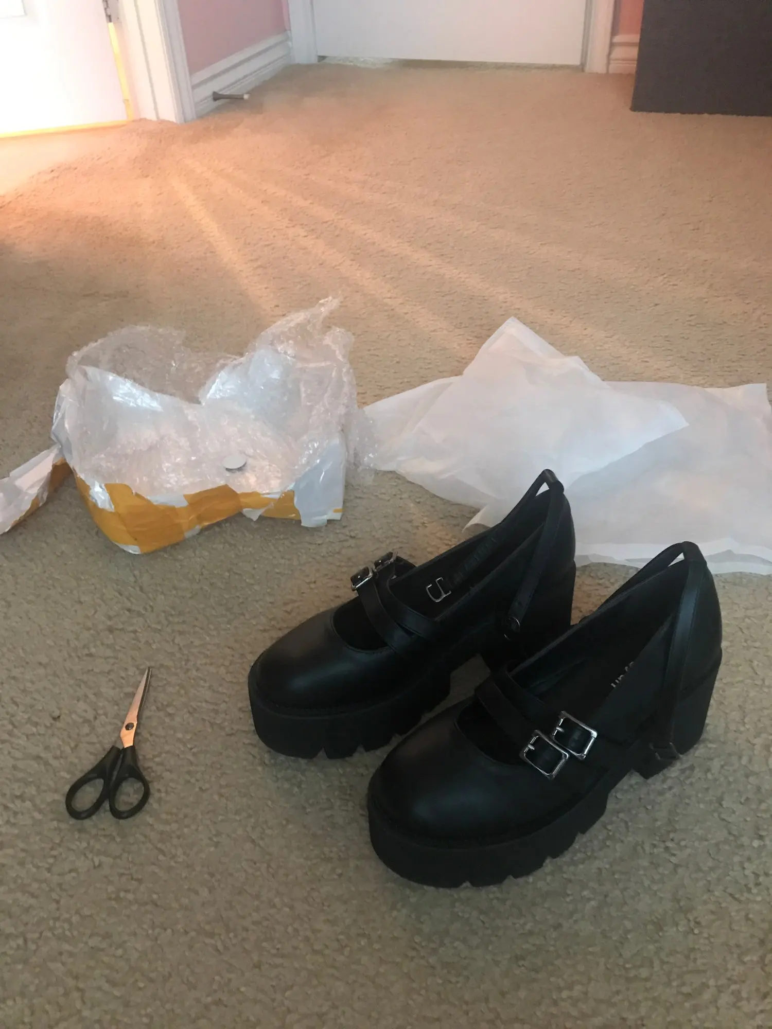 Ожидалось, что он прибудет 3 ноября, но пришел ранним 30 октября! Обувь поставляется в тканевых пакетах и обернута в пузырчатую пленку, поэтому нет повреждений! Я заказал свой обычный размер в Америке (10), и он идеально подходит! Безусловно, некоторые милые кружевные носки с этим будут выглядеть отлично! <3