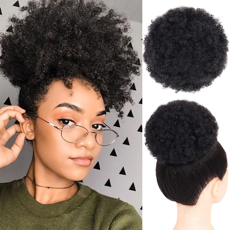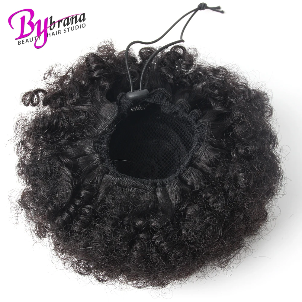 Афро кудрявый хвост, шиньон для женщин, натуральные черные Человеческие волосы Remy, заколка в хвост, кулиска, шиньон, афро шиньон