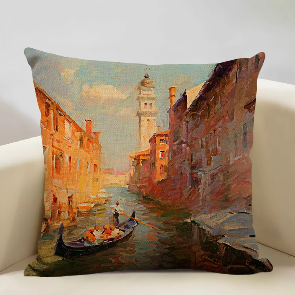 Чехол для подушки с изображением маслом, 45x45 см, льняная Подушка ...