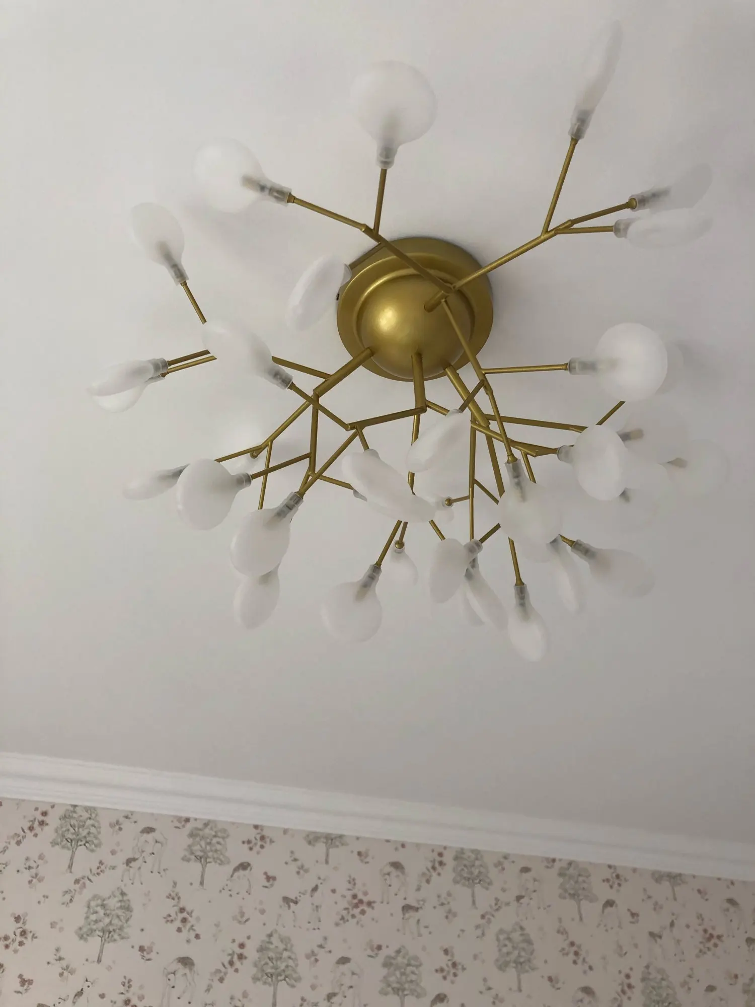 Хорошая люстра за свои деньги. Есть нюансы по качеству крепежной фурнитуры, из-за чего ветки не хотели железно фиксироваться к основанию и раскручивались, но путём некоторых манипуляций мы добились цели :). В собранном виде выглядит очень красиво. Продавец очень отзывчивый, я просила укомплектовать люстру лампочками 4000К, что он и сделал, за со ему большое спасибо! Упакована посылка была более чем качественно. Всего 2 плафона имели микро трещинки, но запасных было 5, поэтому все отлично. В общем, сложилось очень хорошее впечатление о магазине в целом, в планах заказать у них ещё несколько люстр.