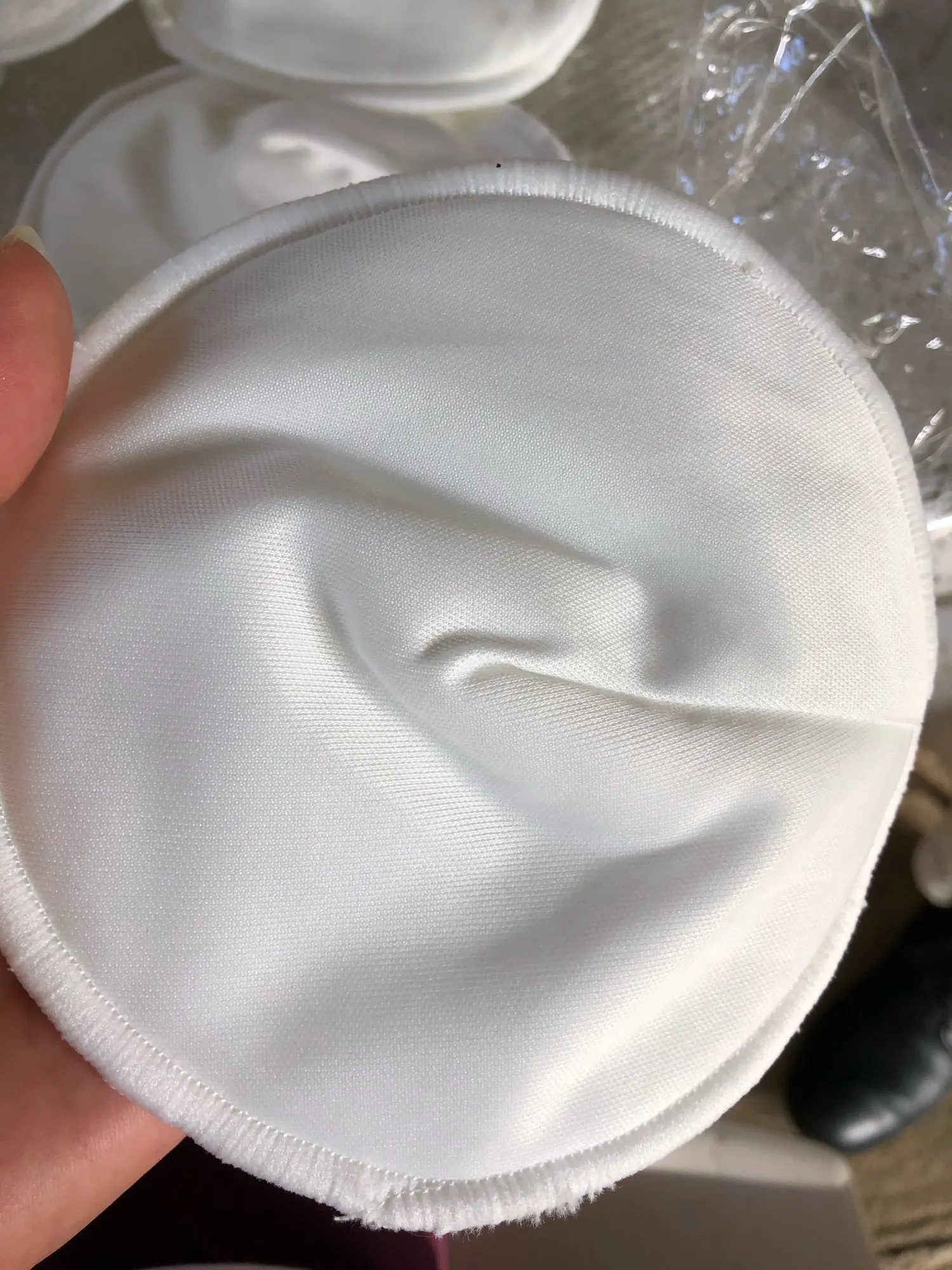 Накладки большие, плотные, одна поверхность гладкая мягкая, другая мягкая, приятная к коже похожа на махровую, ткань на ощупь хлопковая, сделаны выточки, в комплекте мешочек для хранения или стирки, очень классный набор, спасибо!