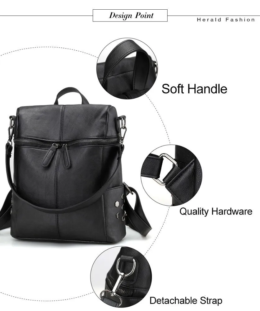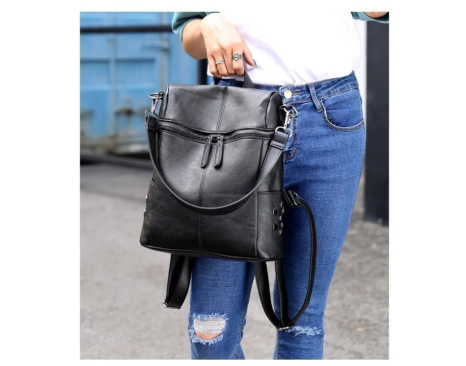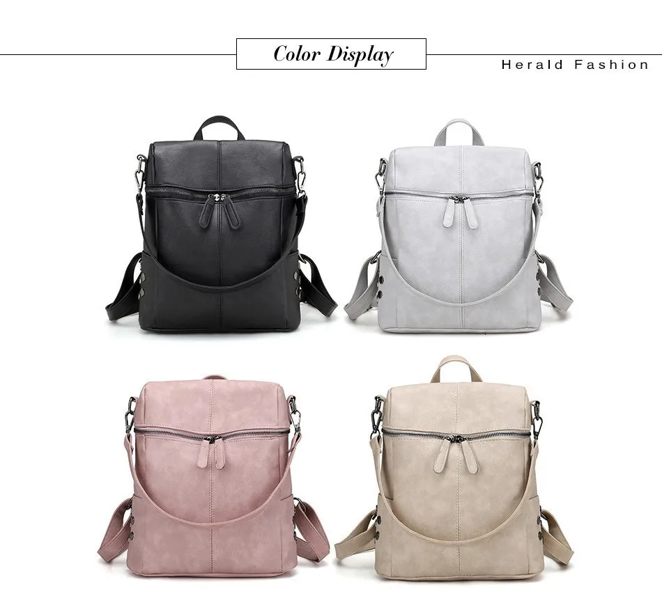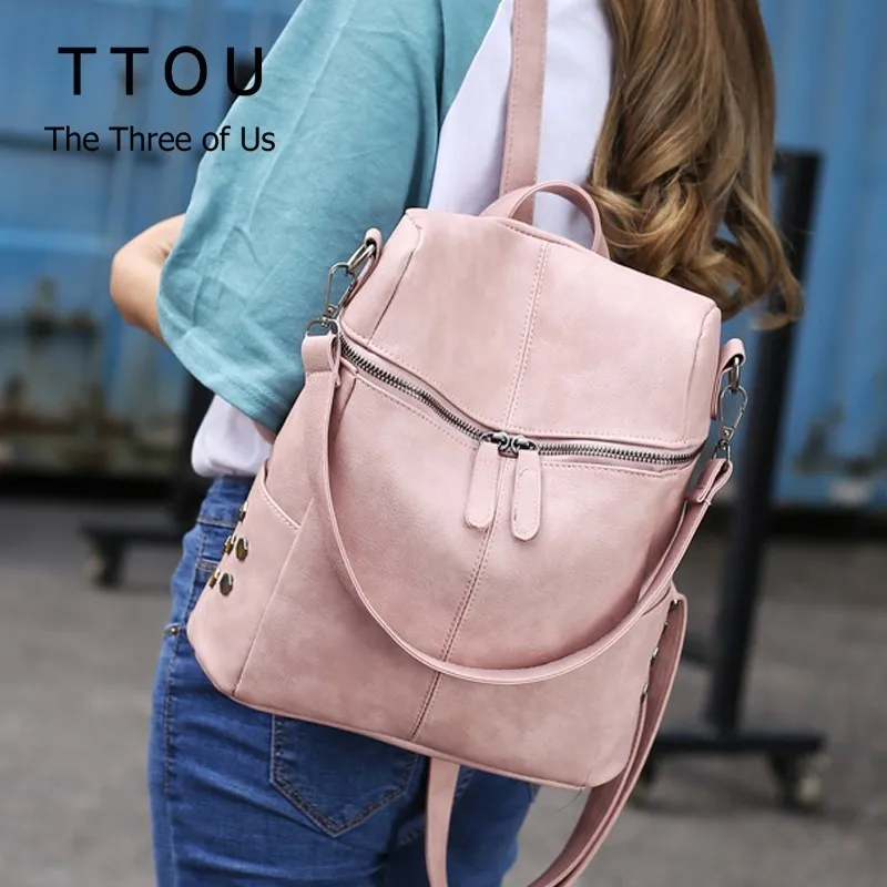 Рюкзак женский кожаный, школьный, однотонный, для девочек-подростков