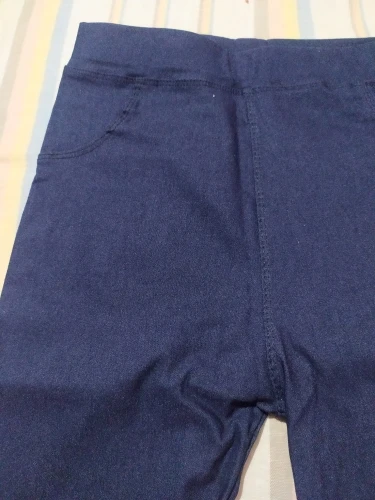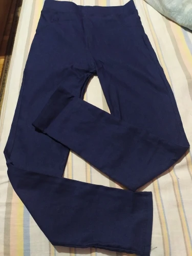 Muy buen producto. El color como en la foto, tejidp elástico. La tela no es algodón, es mas rígida pero al ser elástica se adapta bien. La talla es como la nuestra, quizás són un pelin largos, pero doblándolos un poco quedan bien. Se puede usar para arreglar, está bien acabado