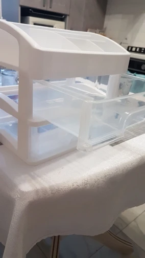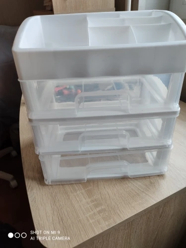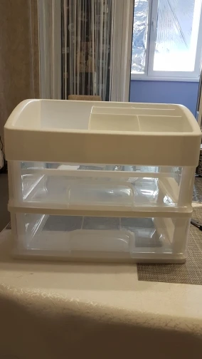 Органайзер нормальный, но выдвижные ящики, задевают немного края стенок при открывании, поскольку там пластик легко деформируемый. Хотелось бы более качественный прозрачный пластик для ящиков, который не деформируется.