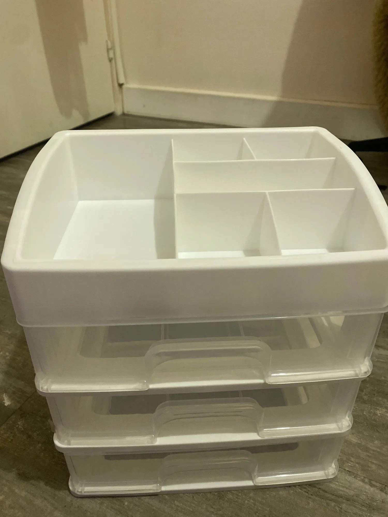 Рекомендуемая покупка. Он пришел в отличной упаковке и в отличном состоянии, как показано в объявлении. Я использую это, чтобы организовать макияж, и это здорово. Я не даю ему пять звезд, потому что ящики немного застревают (только немного), особенно когда вы их закрываете. Дефект минимален, но вы должны принять это во внимание (вам придется нажать немного больше, чтобы закончить закрытие)