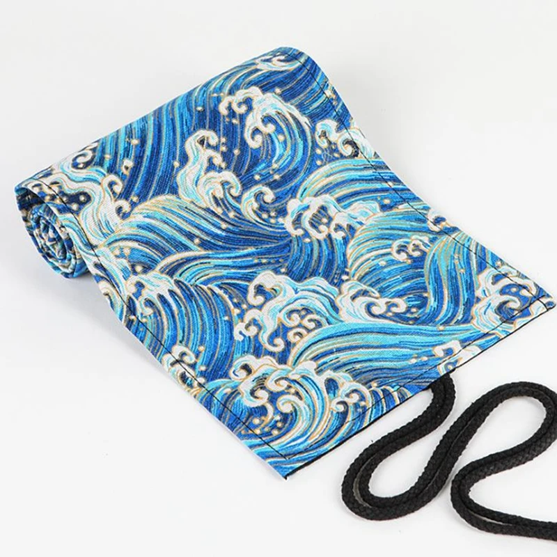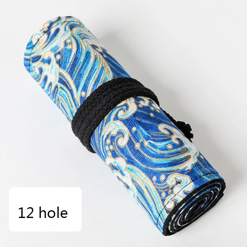 Тканевый школьный чехол-карандаш для девочек и мальчиков, чехол-карандаш в рулоне, милый чехол-карандаш с синей волной, сумка-карандаш, канцелярский чехол с 122436 отверстиями