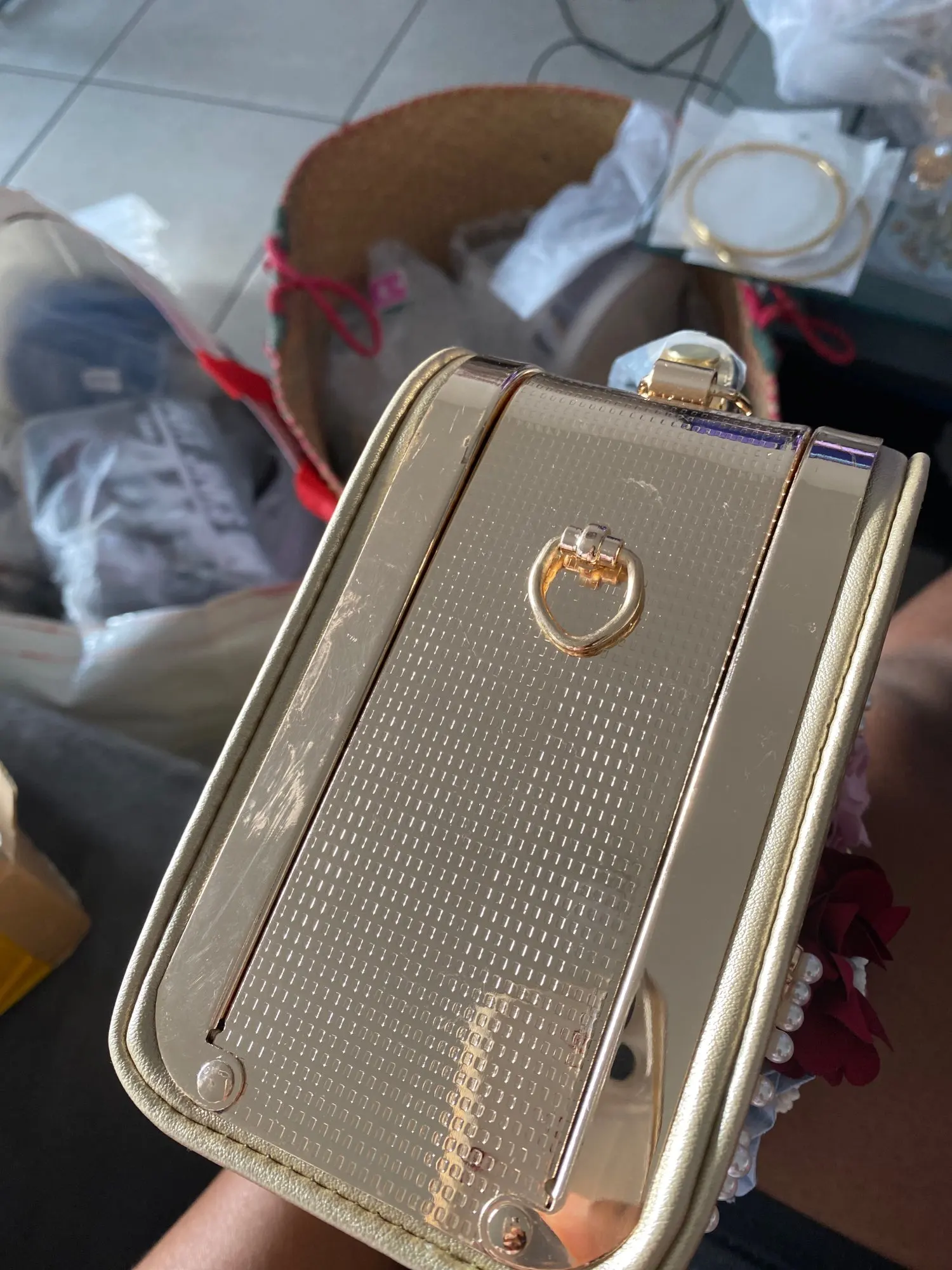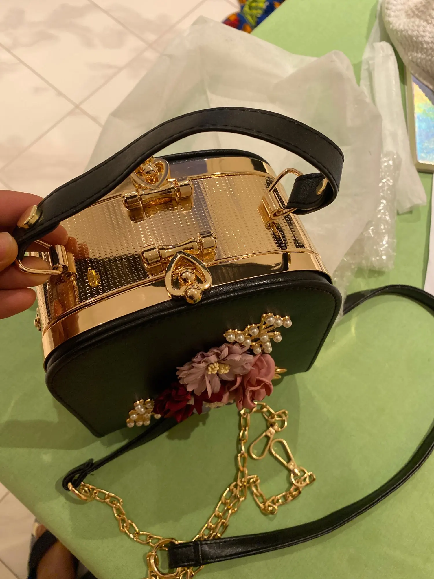 Сумочка очень красивая, но пришла с браком - отломана петля на застежке, теперь её даже запаять невозможно