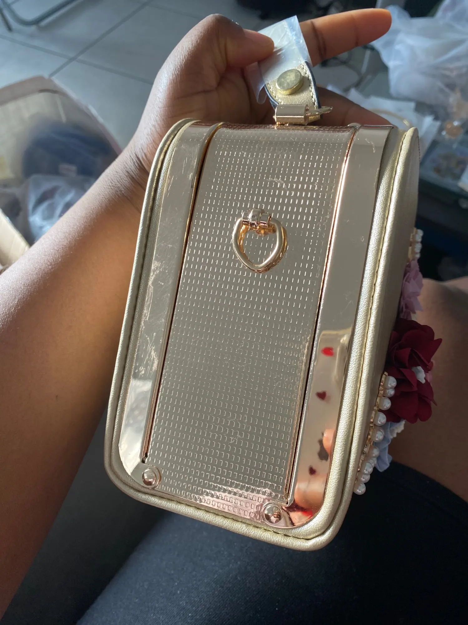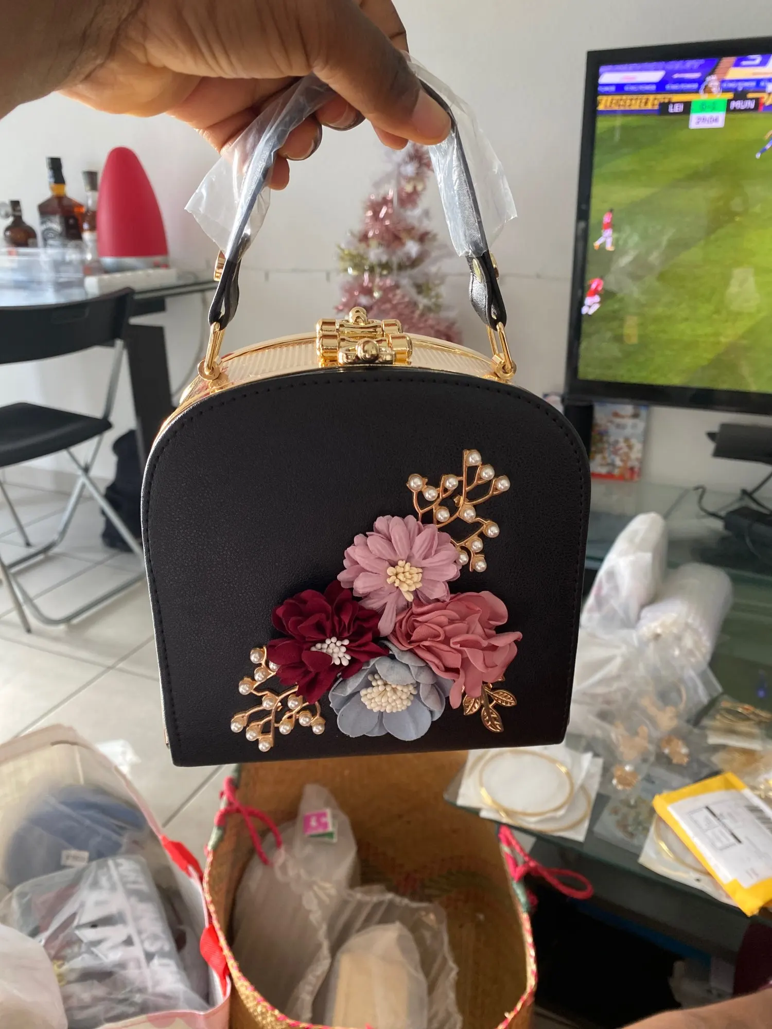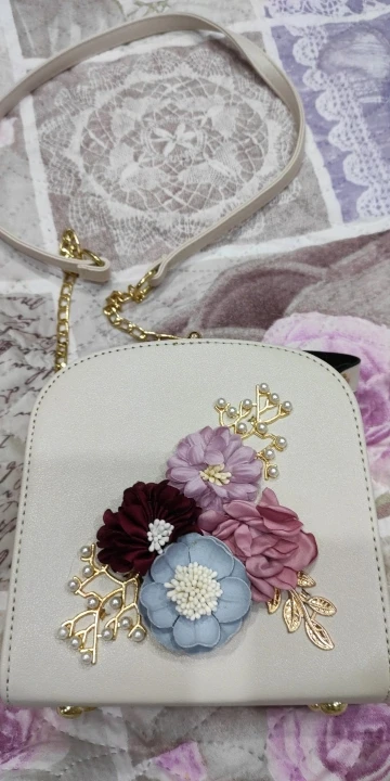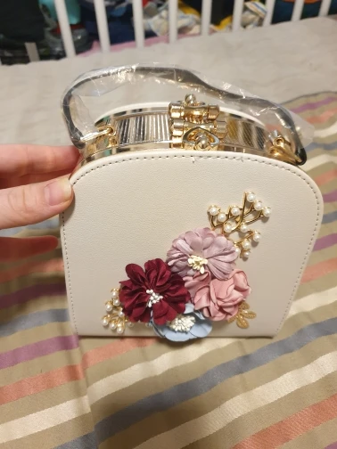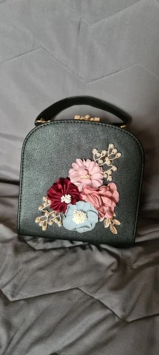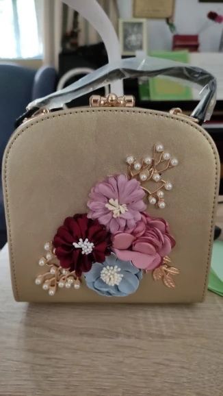 Сумка целая, без повреждений, один цветок помялся. Все как на фото, Я доволна. Рекомендую.
