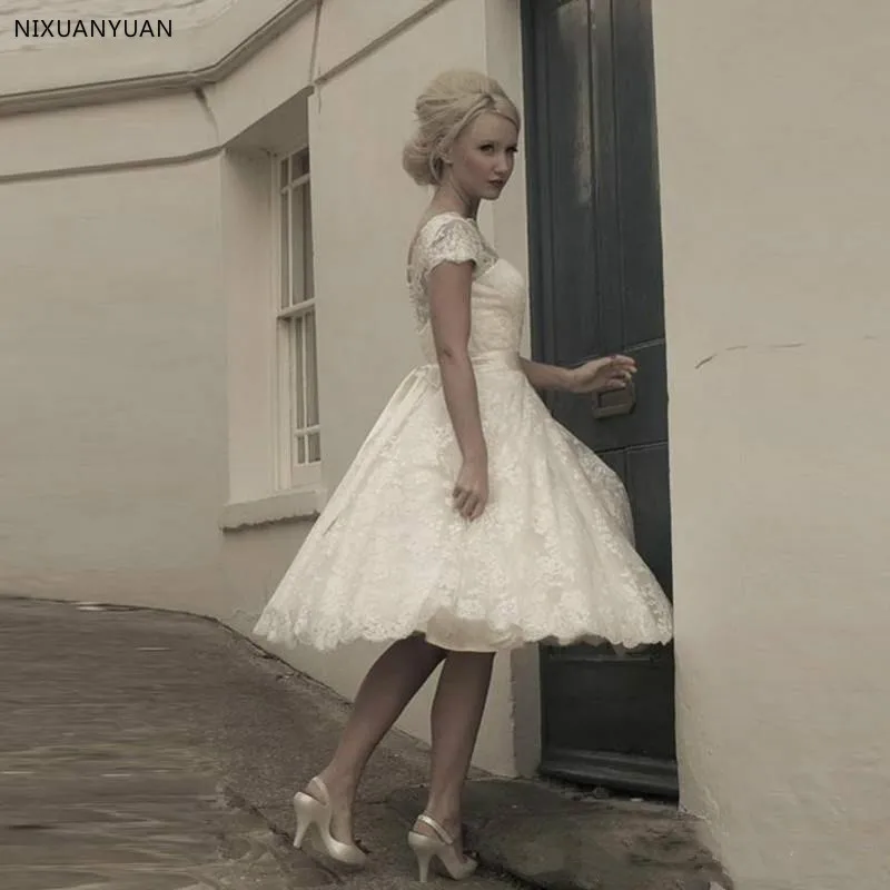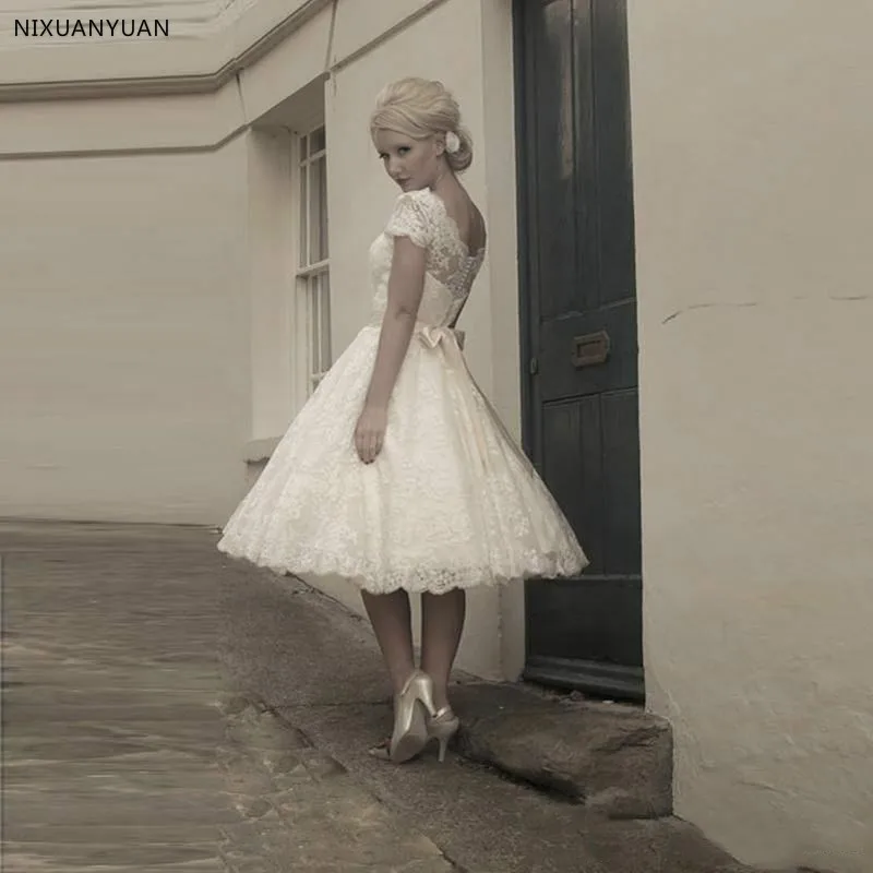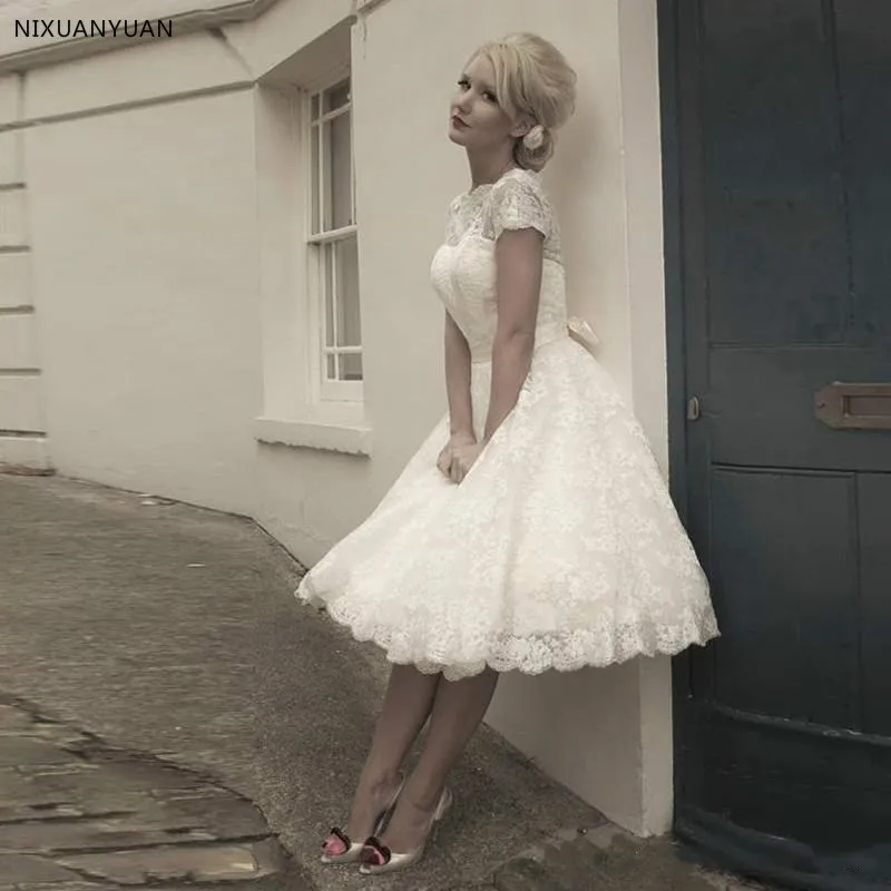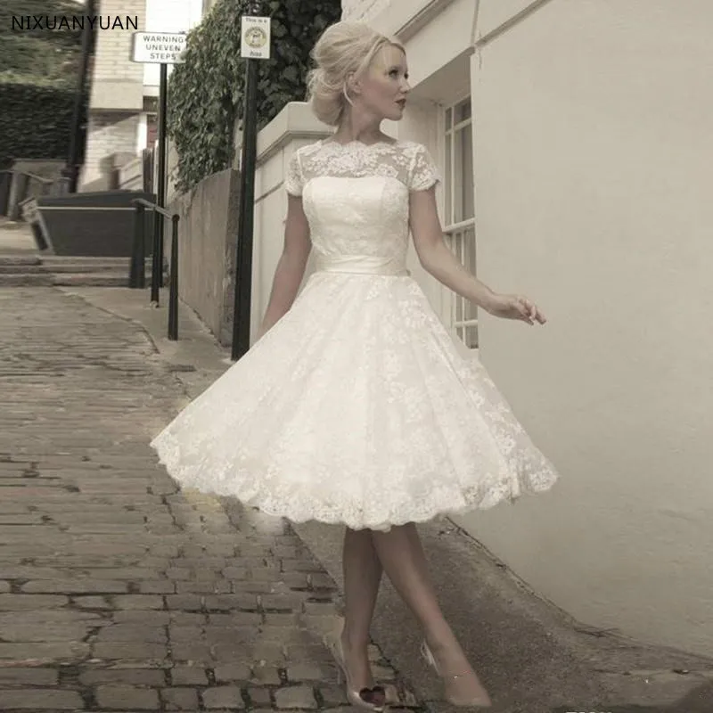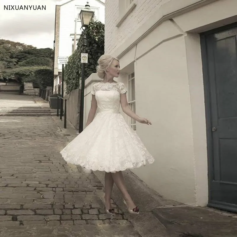 Кружевные короткие свадебные платья, а-силуэт цвета слоновой кости с коротким рукавом, аппликацией и поясом, свадебные платья с бантом, свадебное Платье До Колена, 2021