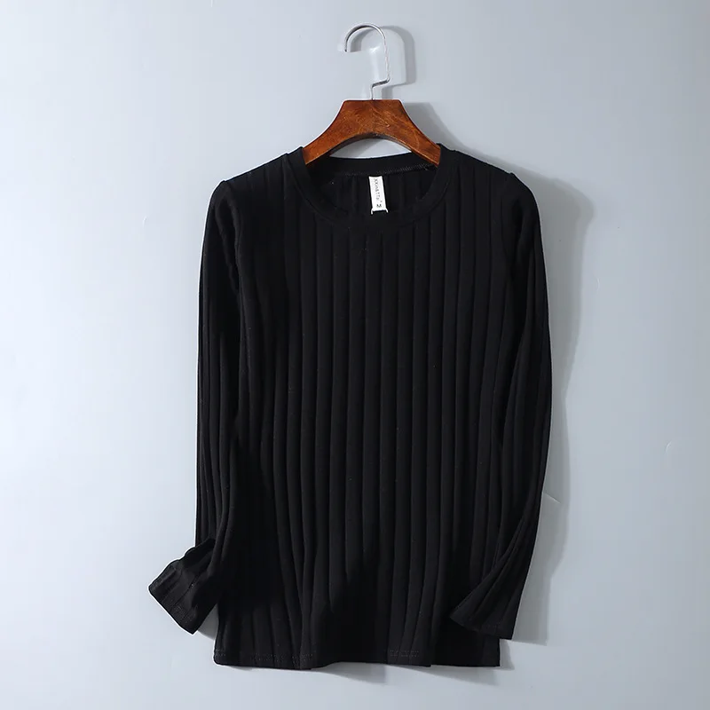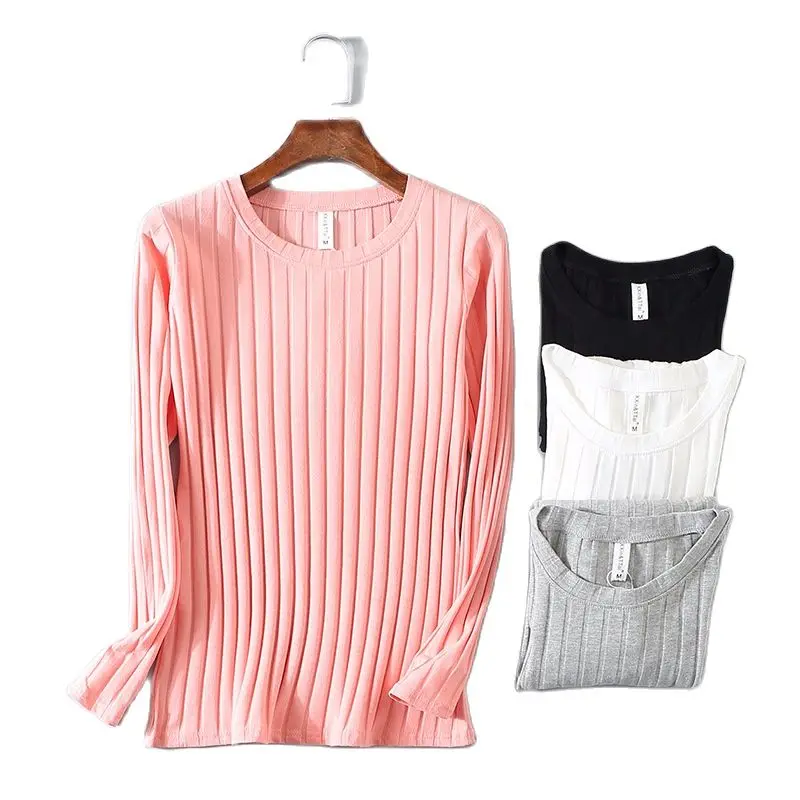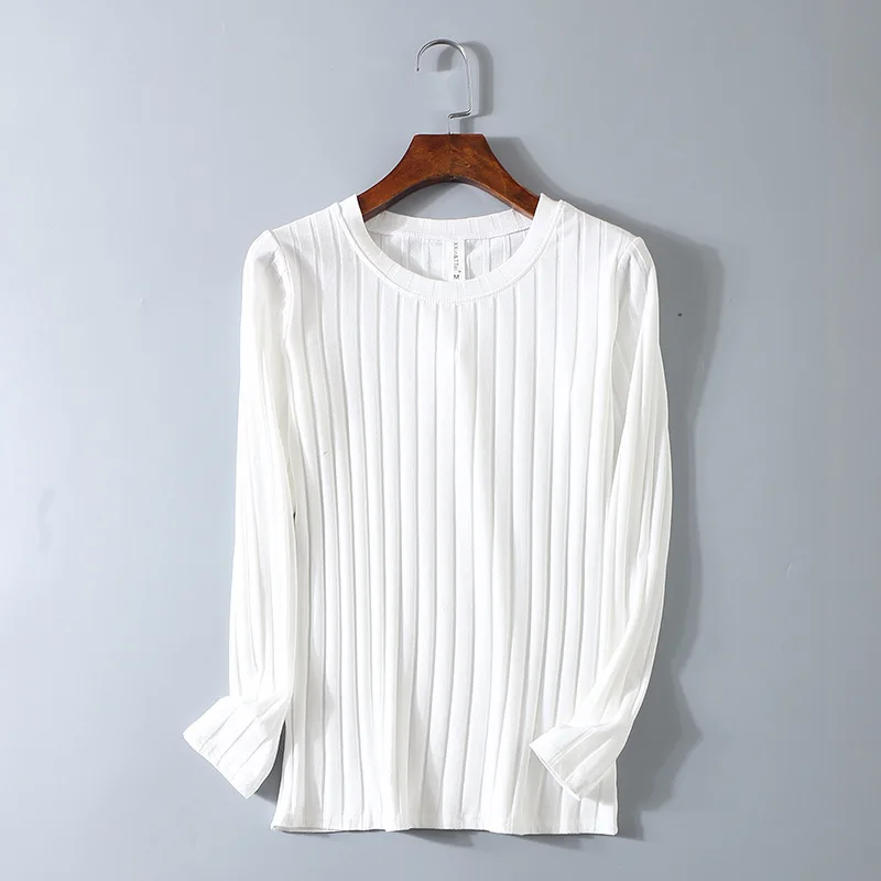 KT01 Весенняя эластичная футболка в рубчик, Женская Повседневная футболка с длинным рукавом, хлопковые футболки, трикотажные топы, размера плюс