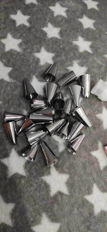Время защиты истекает, и клиент возвратил деньги. Сейчас они прибыли, и я куплю покупателю еще раз за оплату товара. Насадки маленькие и приваренные, я рекомендую этот набор для украшения печенья, тортов личного размера и кексов. Для больших тортов я рекомендую вам найти большие насадки.