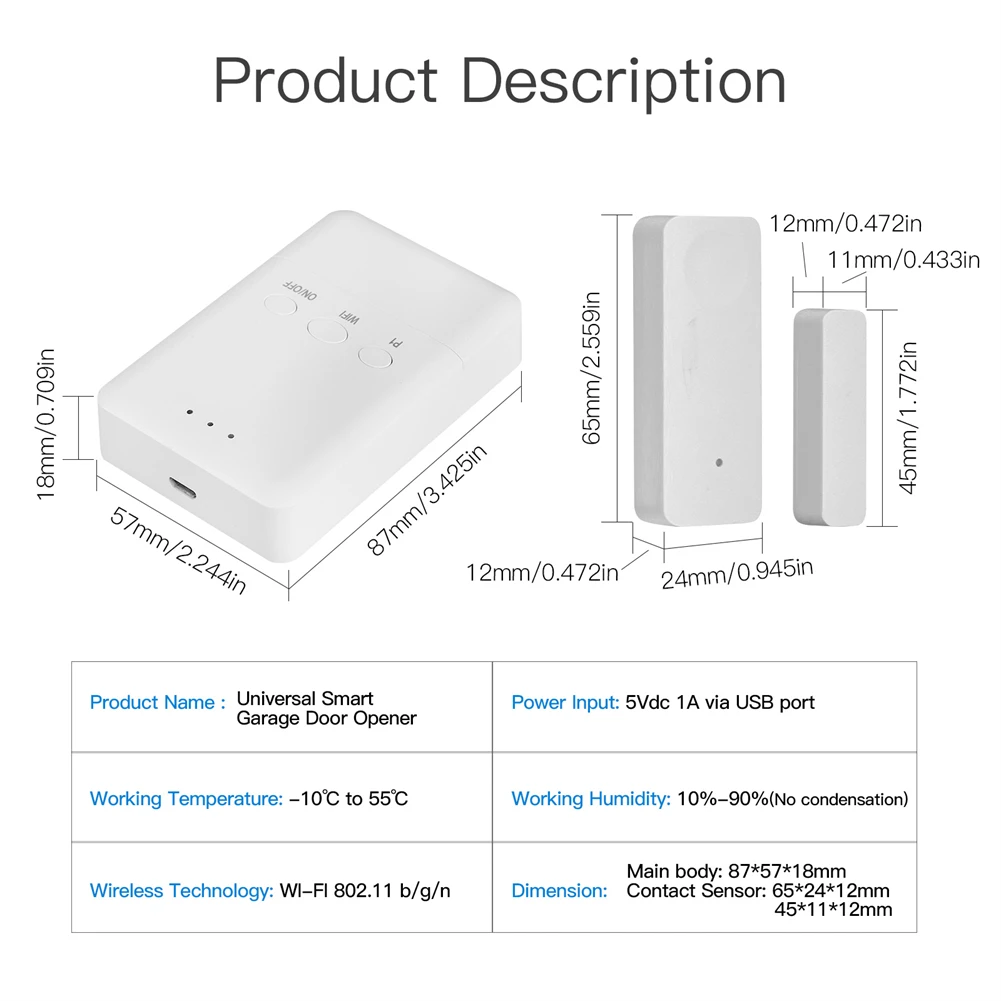 1. Обновите дверь гаража до интеллектуального управления, добавив этот модуль к текущему открывателю. Интегрированная с вашей Системой Wi-Fi, теперь вы можете управлять, контролировать и автоматизировать свою дверь с помощью вашего смартфона и домашних помощников Alexa / Google.