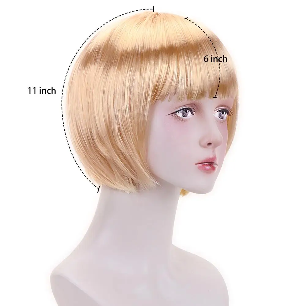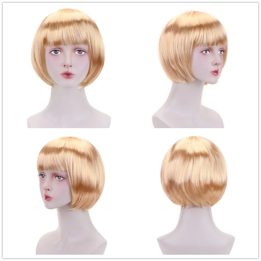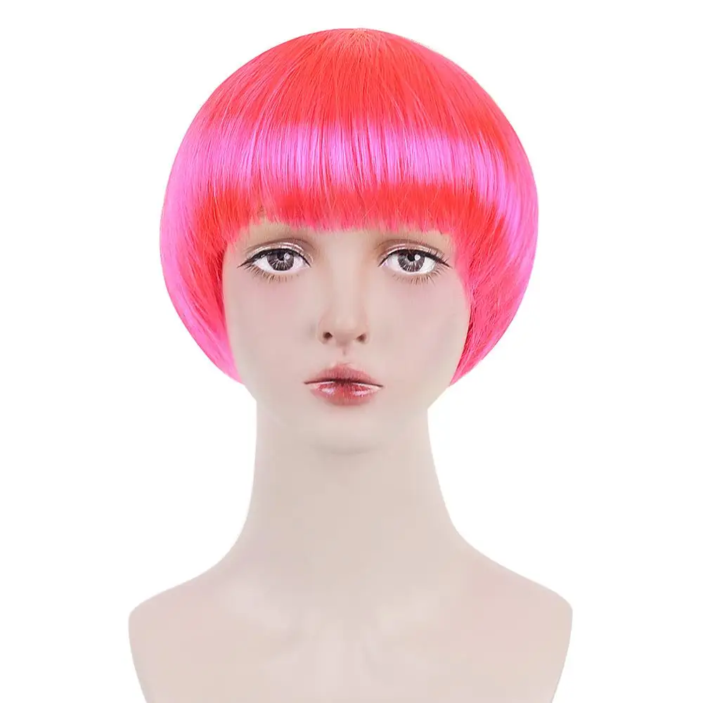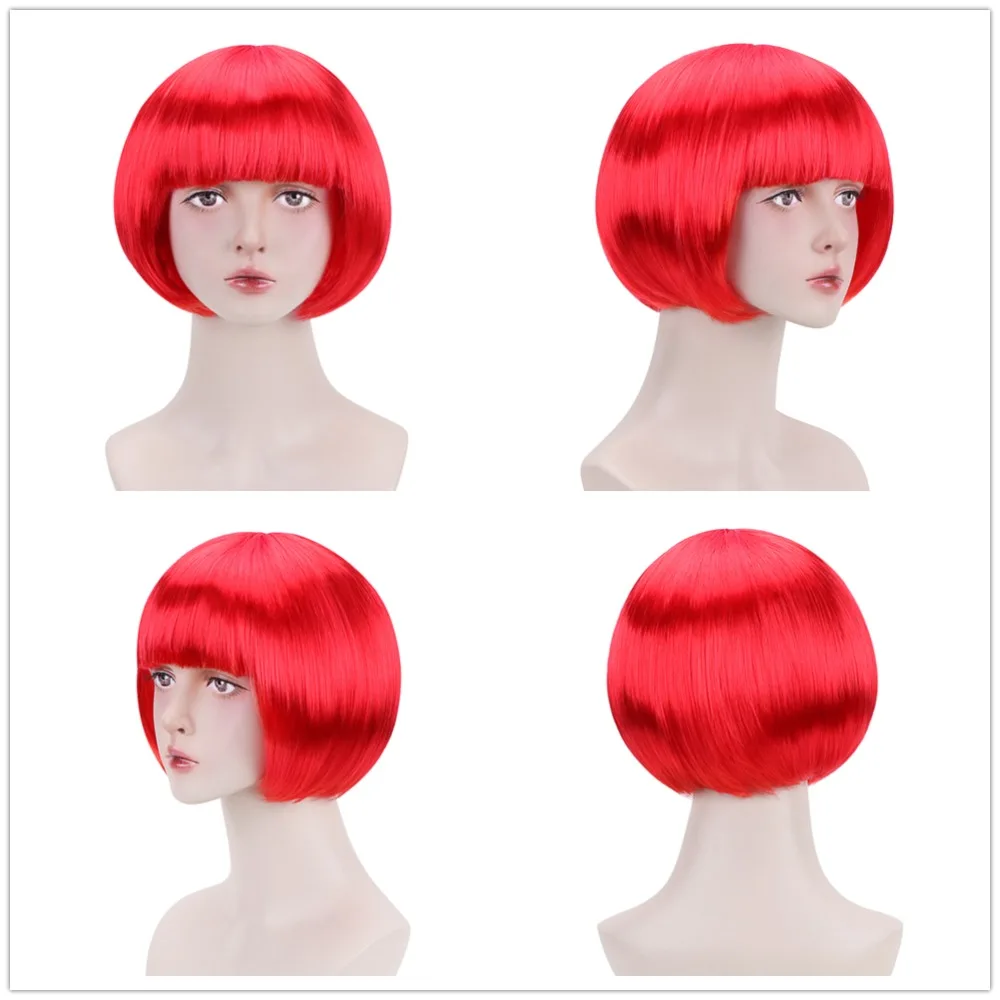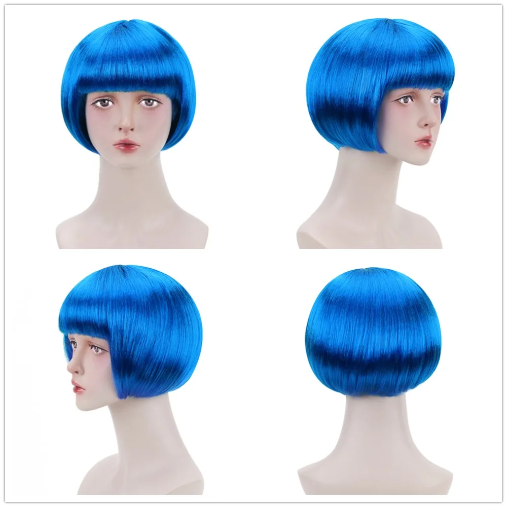 Бесплатная красота 10 ''короткий синтетический боб парик черный розовый коричневый блондин зеленый синий красный фиолетовый Bobo прическа парики с челкой для женщин