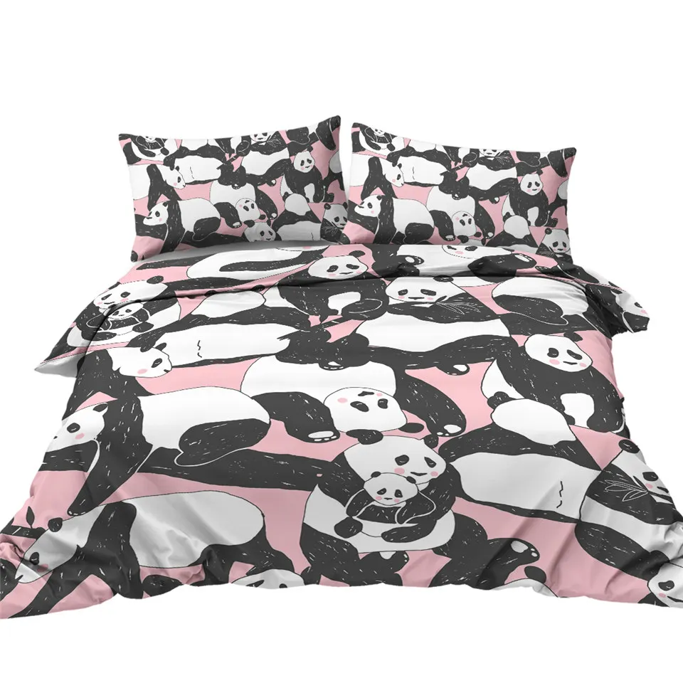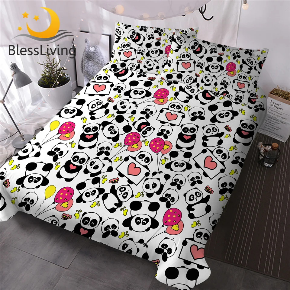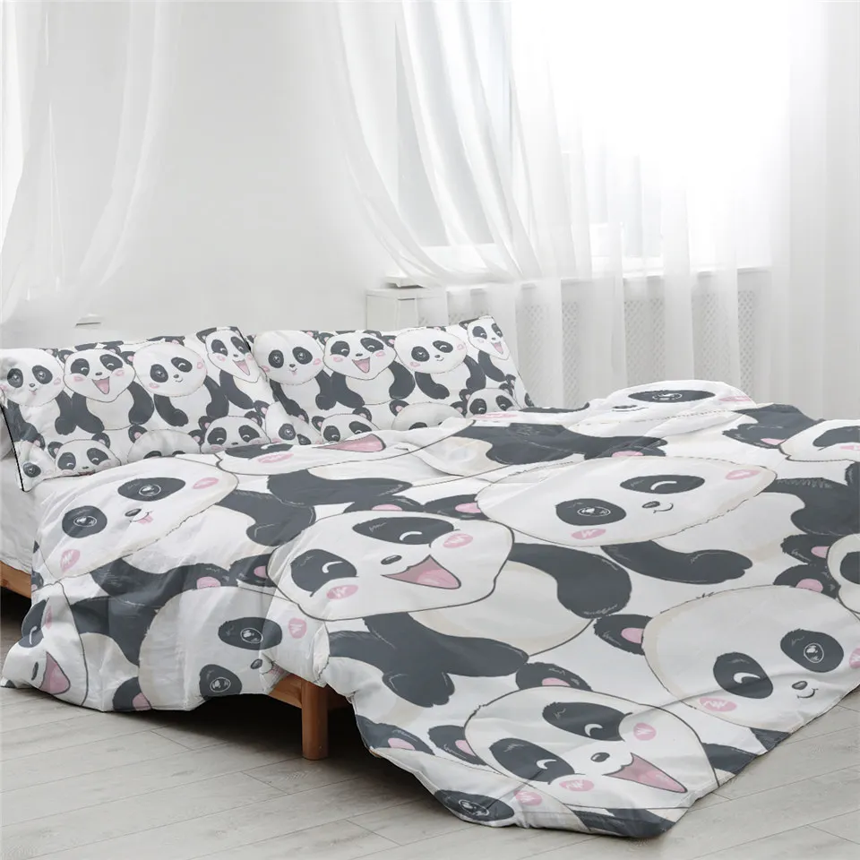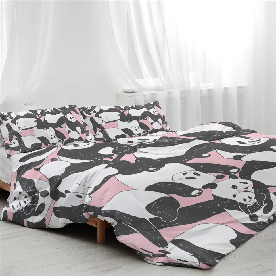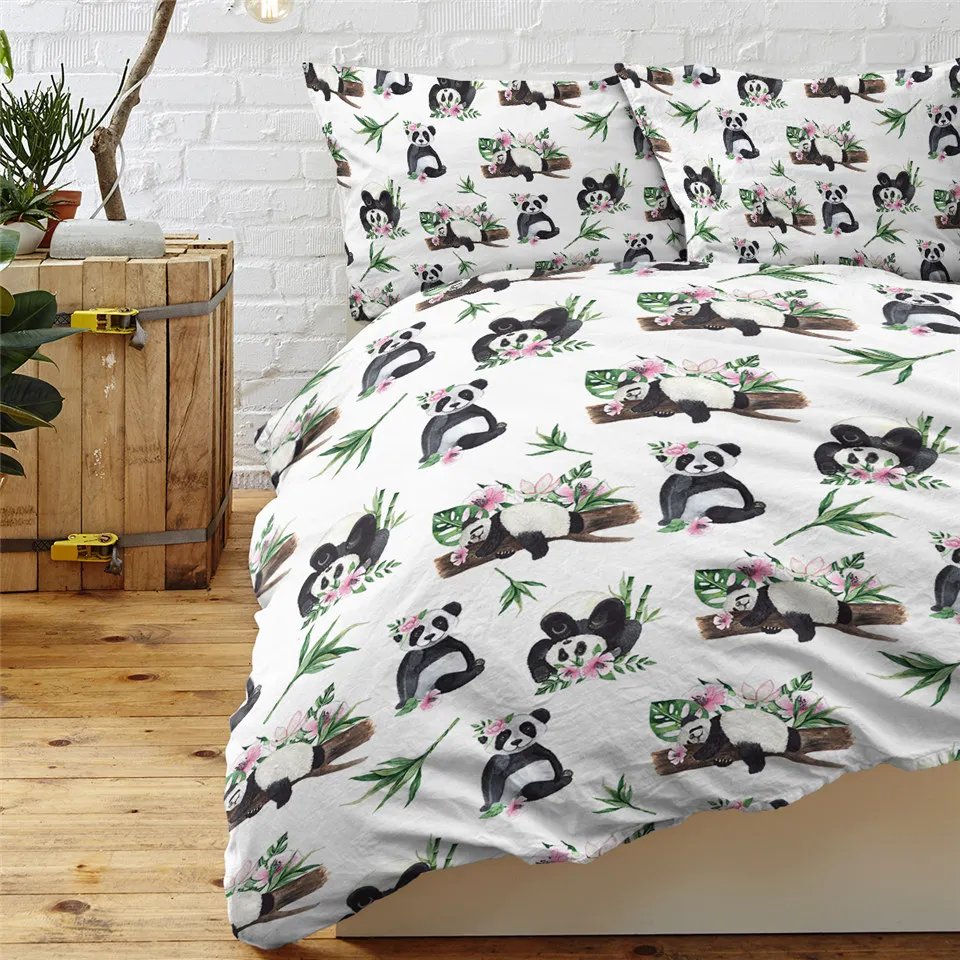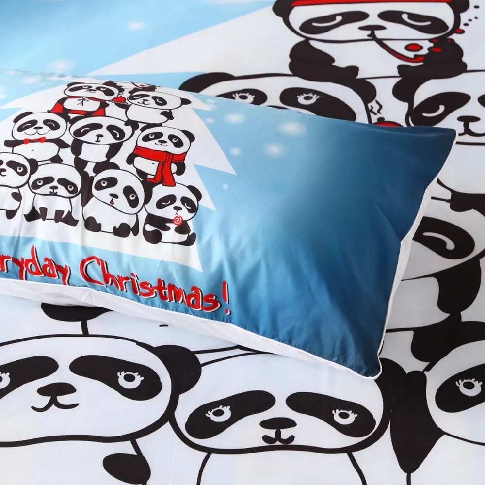 Комплект постельного белья blesslife Pandas, двуспальный комплект с мультяшным рисунком, пододеяльник для детей с изображением снежной елки, домашний текстиль, постельное белье с животными, 3 шт.