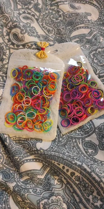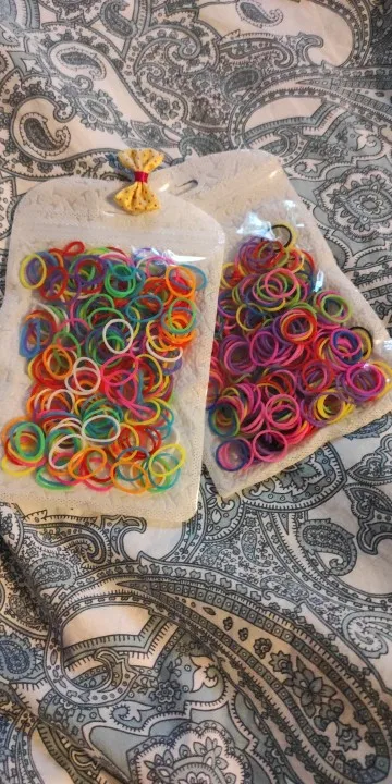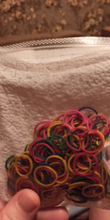 Резиночки красивые, яркие, очень понравились. по количеству не знаю, не считала. Спасибо за подарочек!