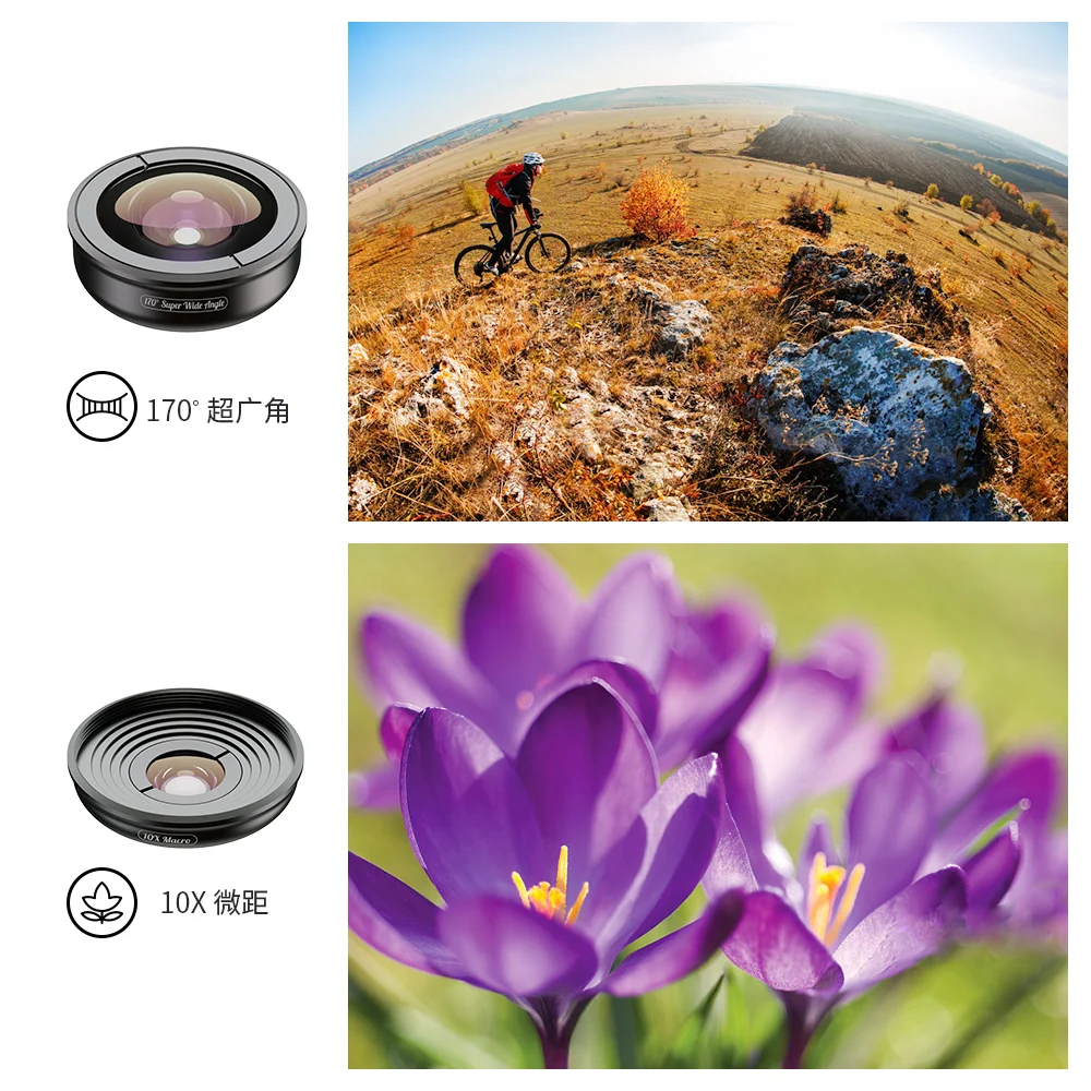 【No Темные края без искажений 】 этот широкоугольный объектив захватывает в 2x больше изображений благодаря многоэлементному стеклянному дизайну, обеспечивающему четкость края до края. Наши Линзы изготовлены на заказ из 4-х слоев качественного кинотеатра и аэрокосмического металла