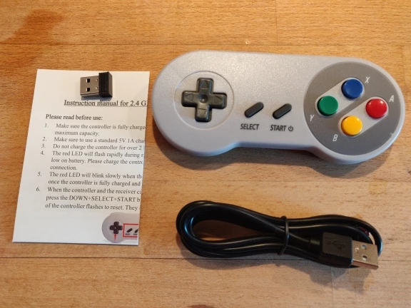 Отличный геймпад! В Windows определился моментально, настройка в эмуляторах без проблем, все работает, кнопки жмутся превосходно, шифты работают плавно, крестовина удобная, start и select резиновые. Лагов не замечено, отклик нажатий без задержек. Материалы изготовления хорошие, пластик приятный, без едких запахов. Зарядка около одного часа, в комплекте идёт кабель USB-MicroUSB, ресивер и инструкция. В будущем протестирую на Raspberry (когда соберу, все руки не доходят) и дополню отзыв. Заодно отпишусь, как держит заряд, пока не успел разрядить, на новогодних будет больше времени на игры. В остальном рекомендую к покупке, отличный девайс за адекватную цену!