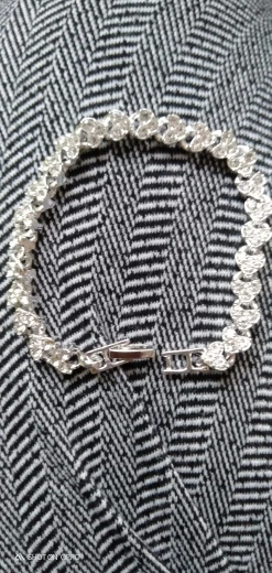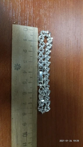 Браслет пришёл быстро, даже не ожидала, красивый, немного великоват и не серебро, но я довольна. Спасибо продавцу.