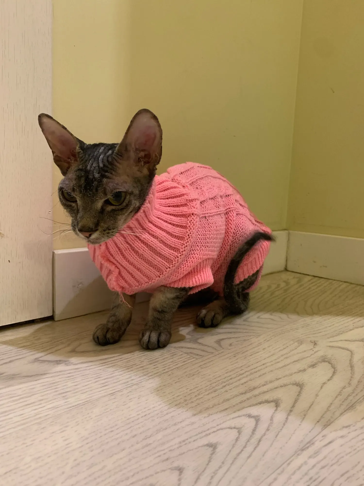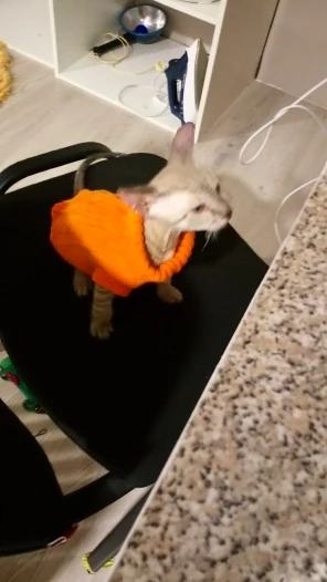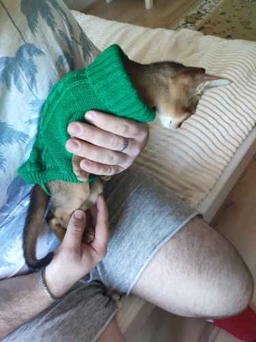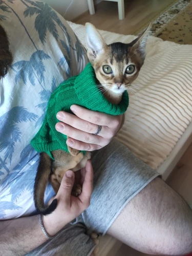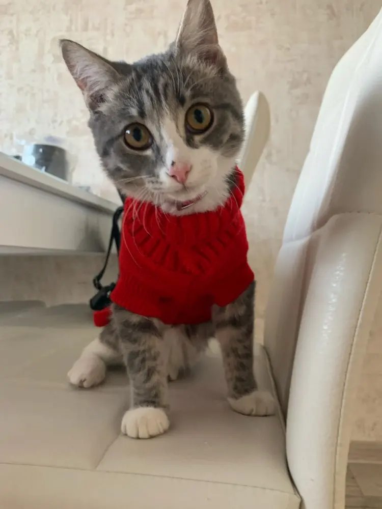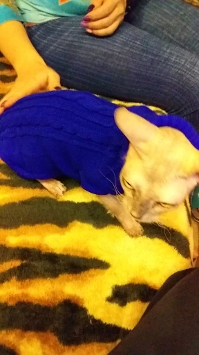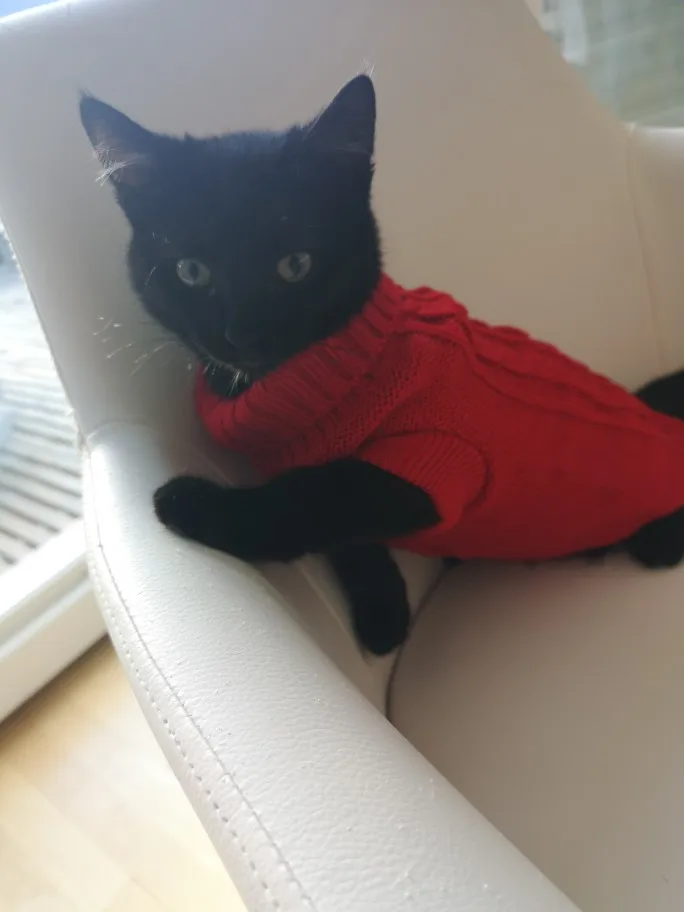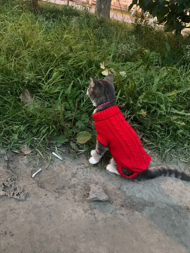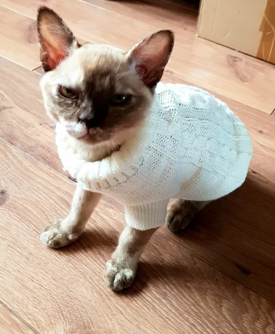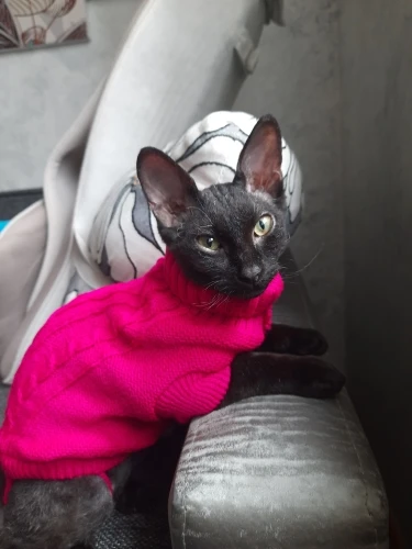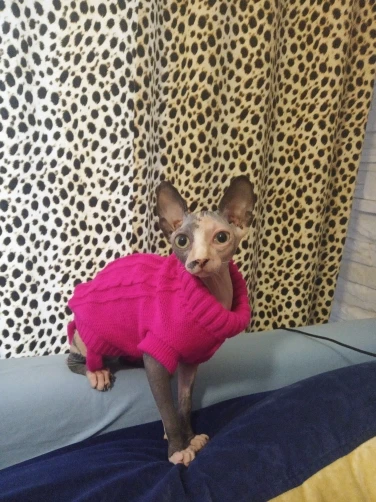 я в восторге. Подошол прекрасно, хотя брала L на вирост. Кошке 5 месяцев сама мелкая - длиная и худая. но свитер хоро сел. На удивление оч.спокойно отнеслась к одежке, буду одевать на ночь, поскольку спим с открытыми окнами) а там по необходимости. Това пришол неожиданно быстро, качество замечательно, выростим заеажу еще. Спасибище