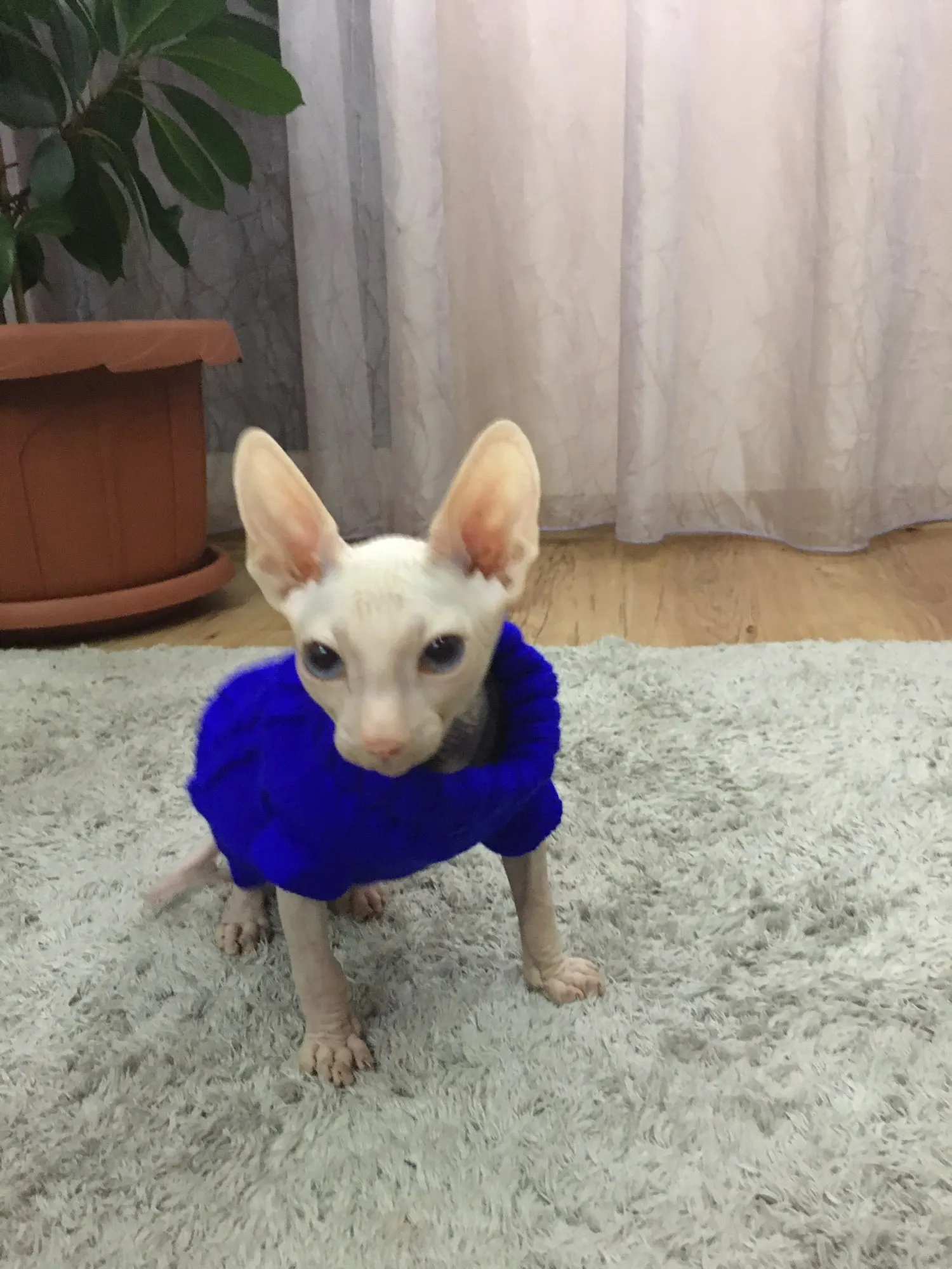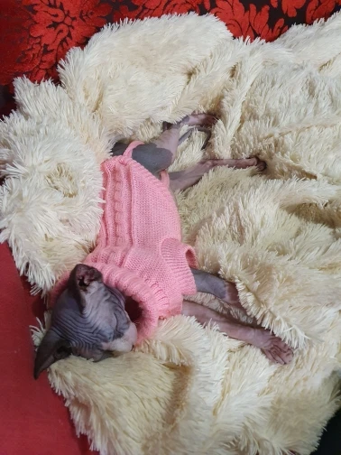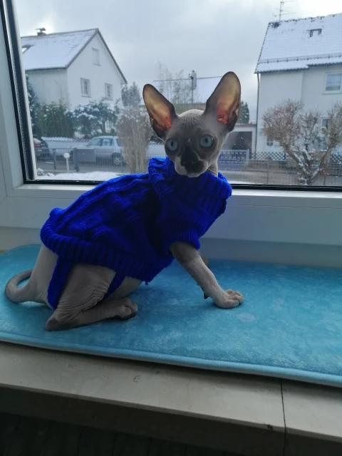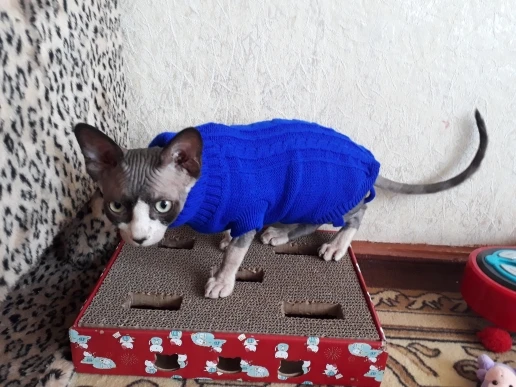 Одежда отличная!!! Очень мягкая, приятная. Правда думала что на зиму будет в самый раз, но будет уже мало. У нас кот сфинкс 2 месяца.