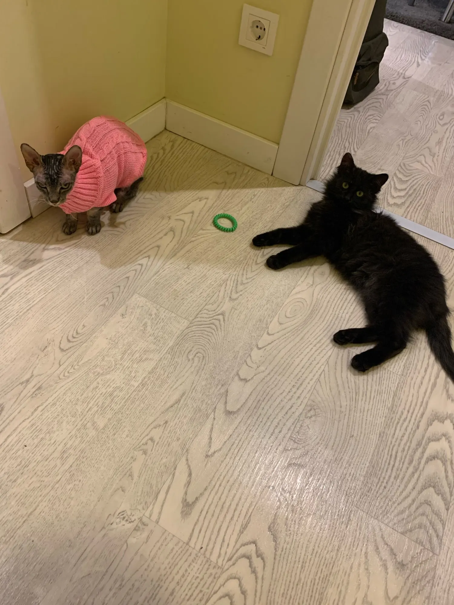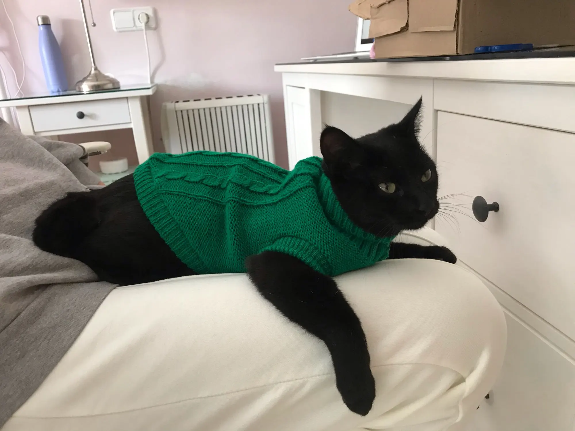 цвет намного ярче, чем на картинке, это ещё круче! Свитер сохнет после стирки, потом прикреплю фото свитера на котейке
